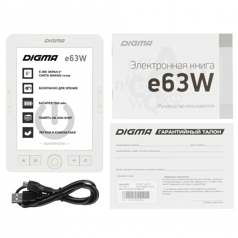 Электронная книга Digma R63W 6", белый