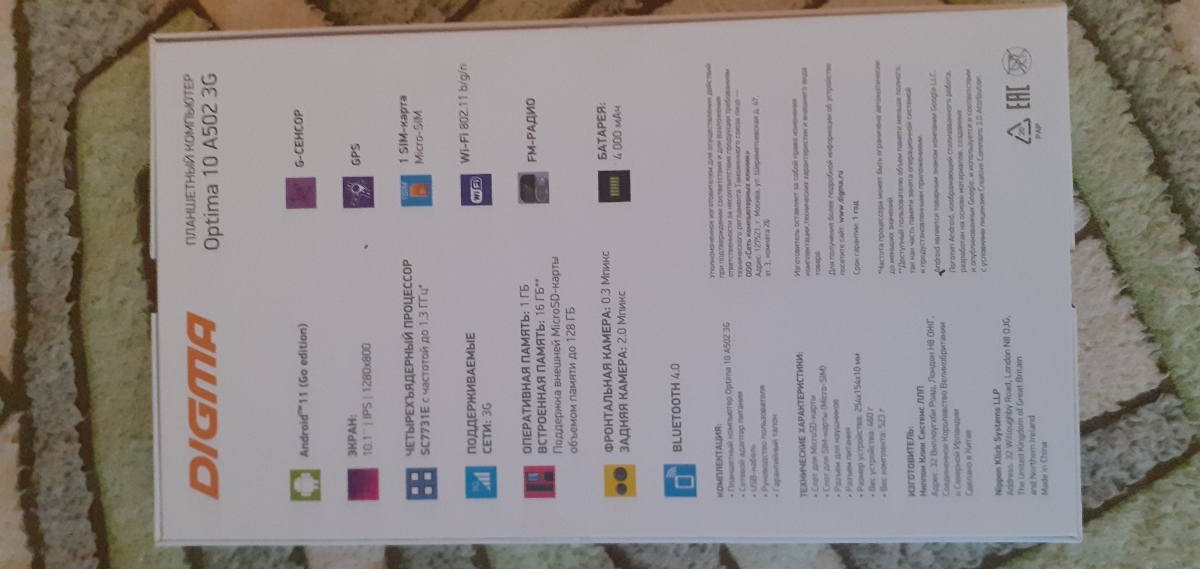 Планшет Digma 10 A502 3G, 10.1", 16GB, черный