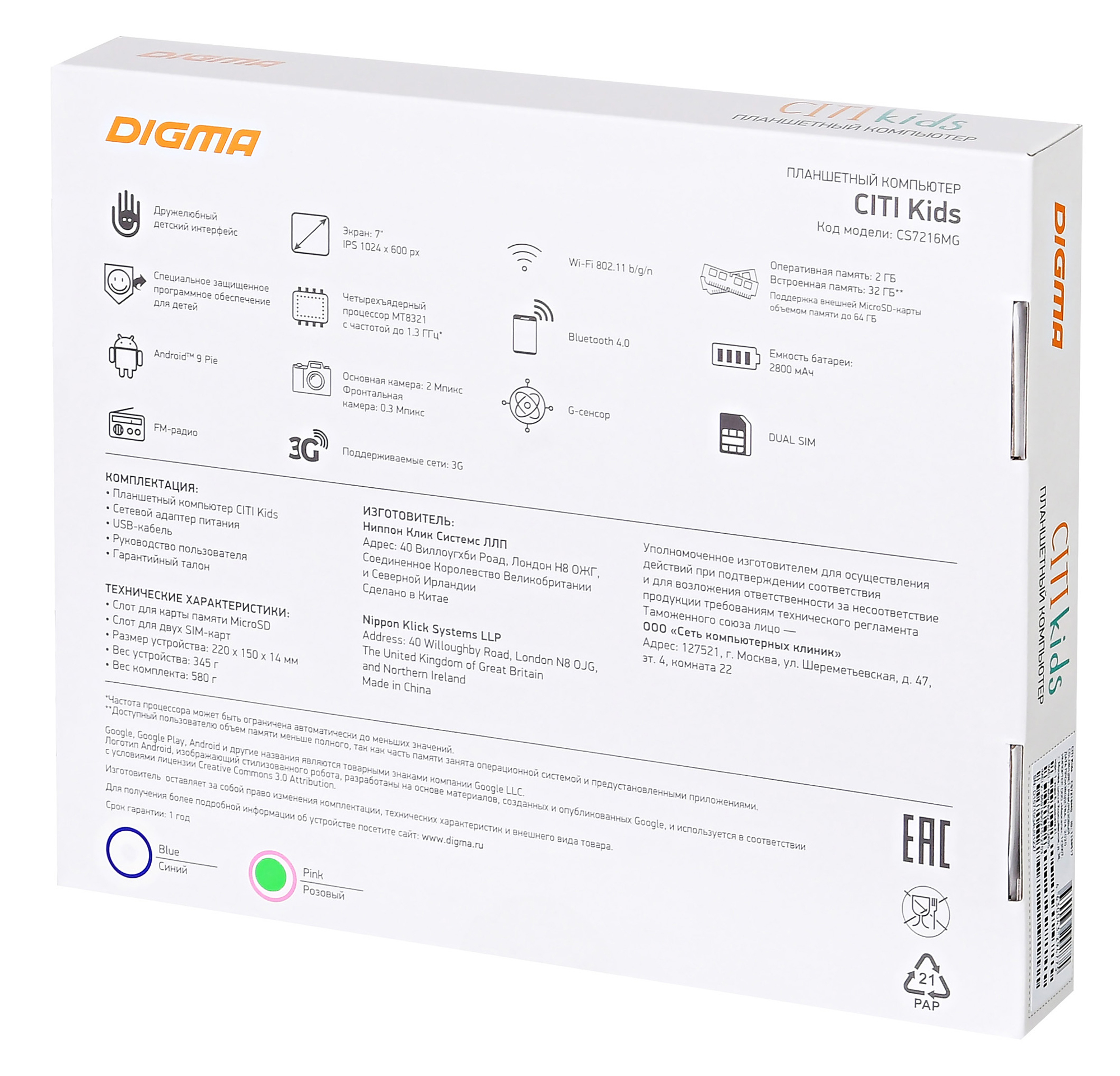 Детский планшет Digma Kids MT8321, 7", 32GB, розовый