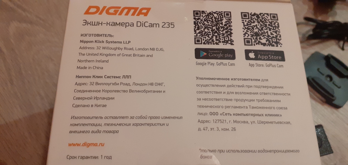 Видеорегистратор Digma FreeDrive Action 4K черный