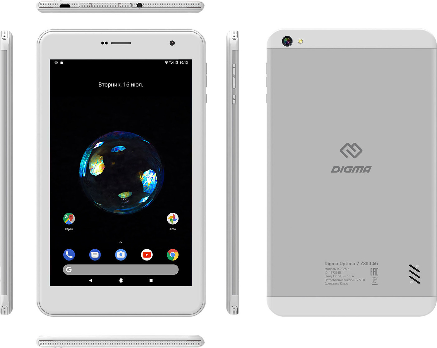 Планшет Digma Optima 7 Z800 LTE, 7", 64GB, серебристый, белый