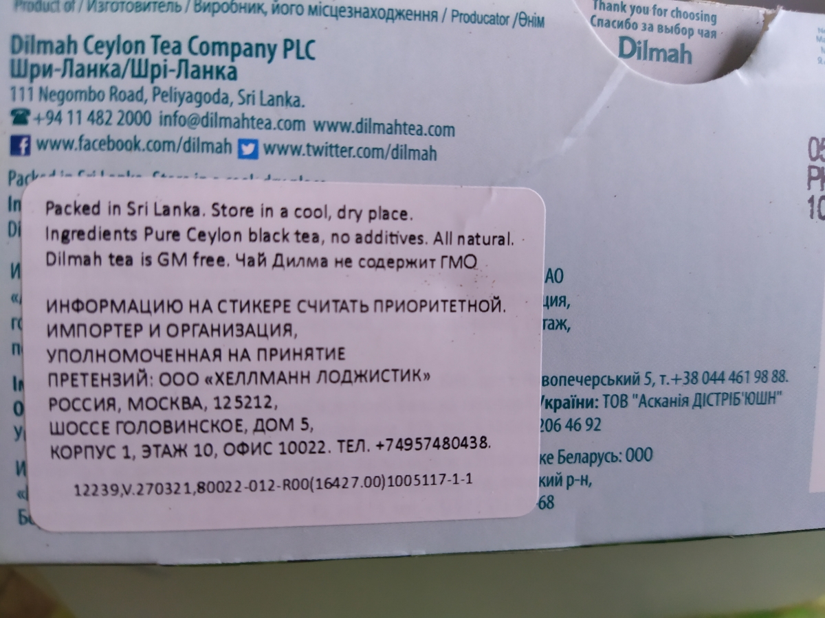 Чай Dilmah Цейлонский черный листовой, 250 г х 2 шт