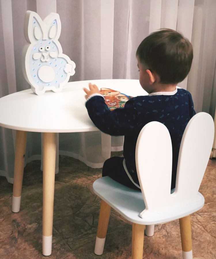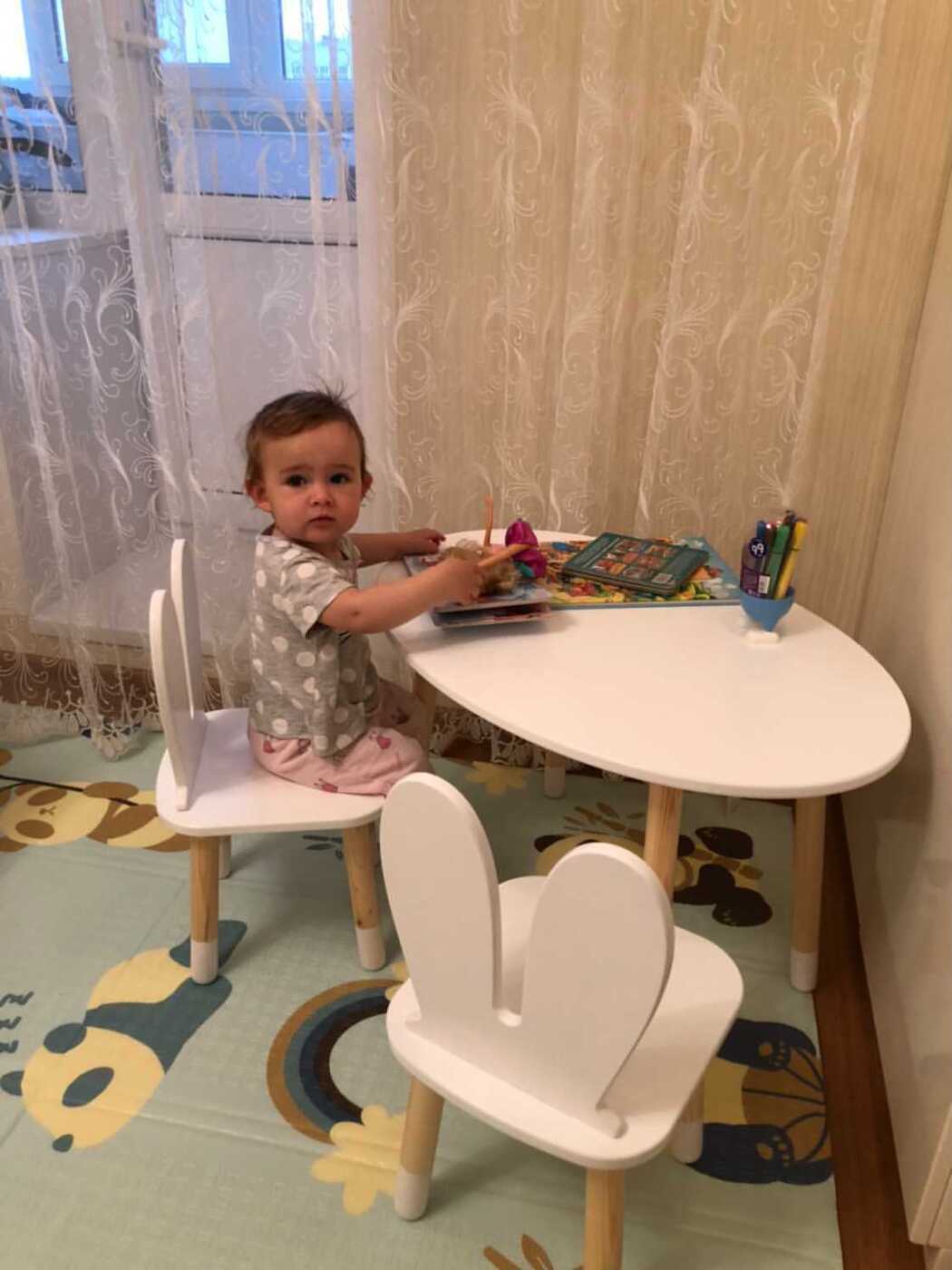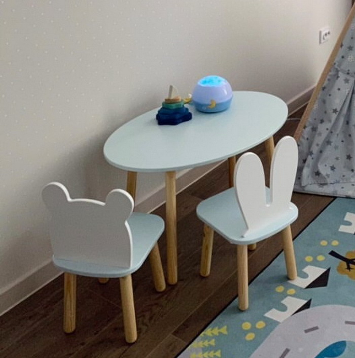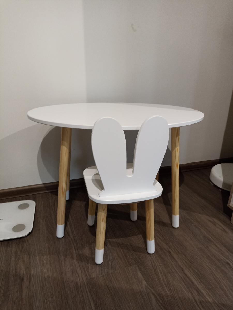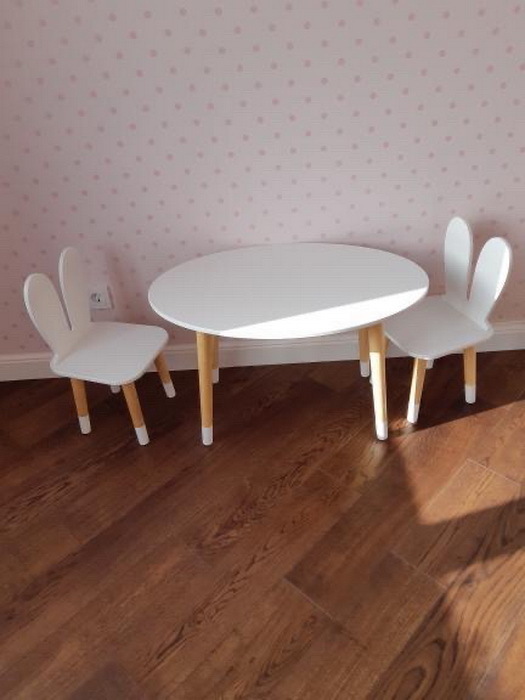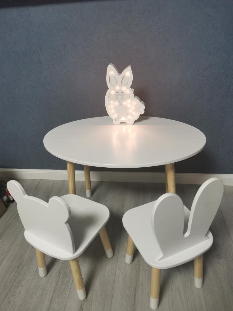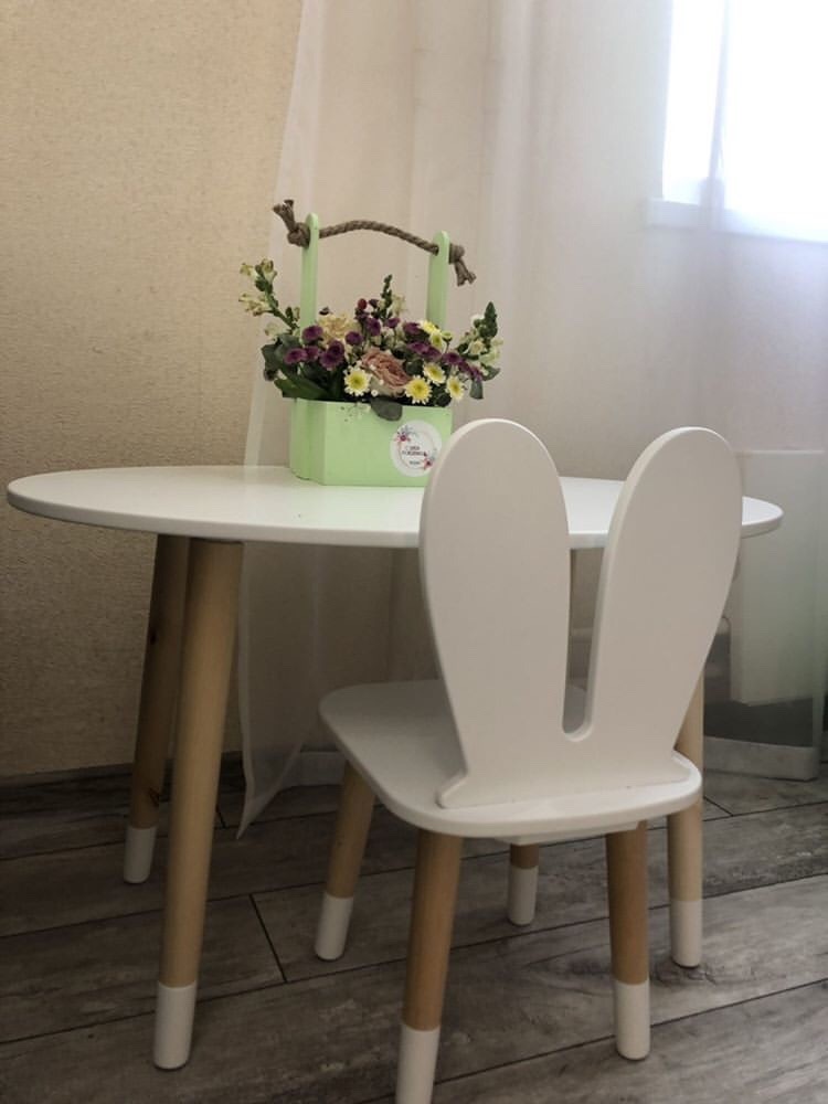 Комплект детской мебели DIMDOMkids, стол "Овал" белый + стул "Зайка" белый