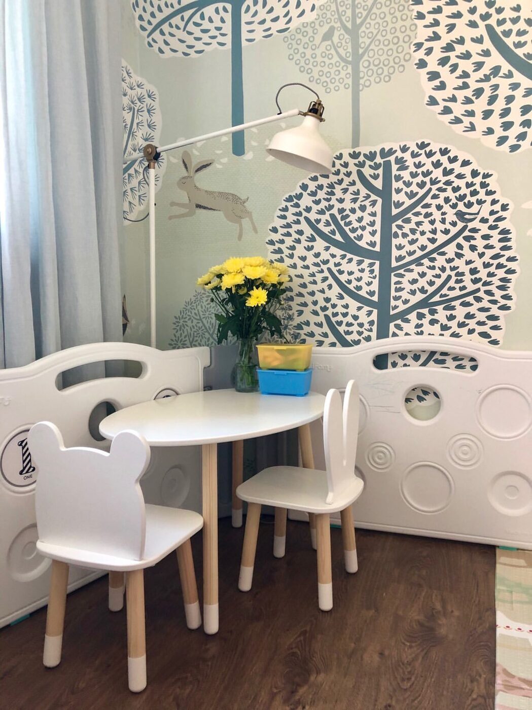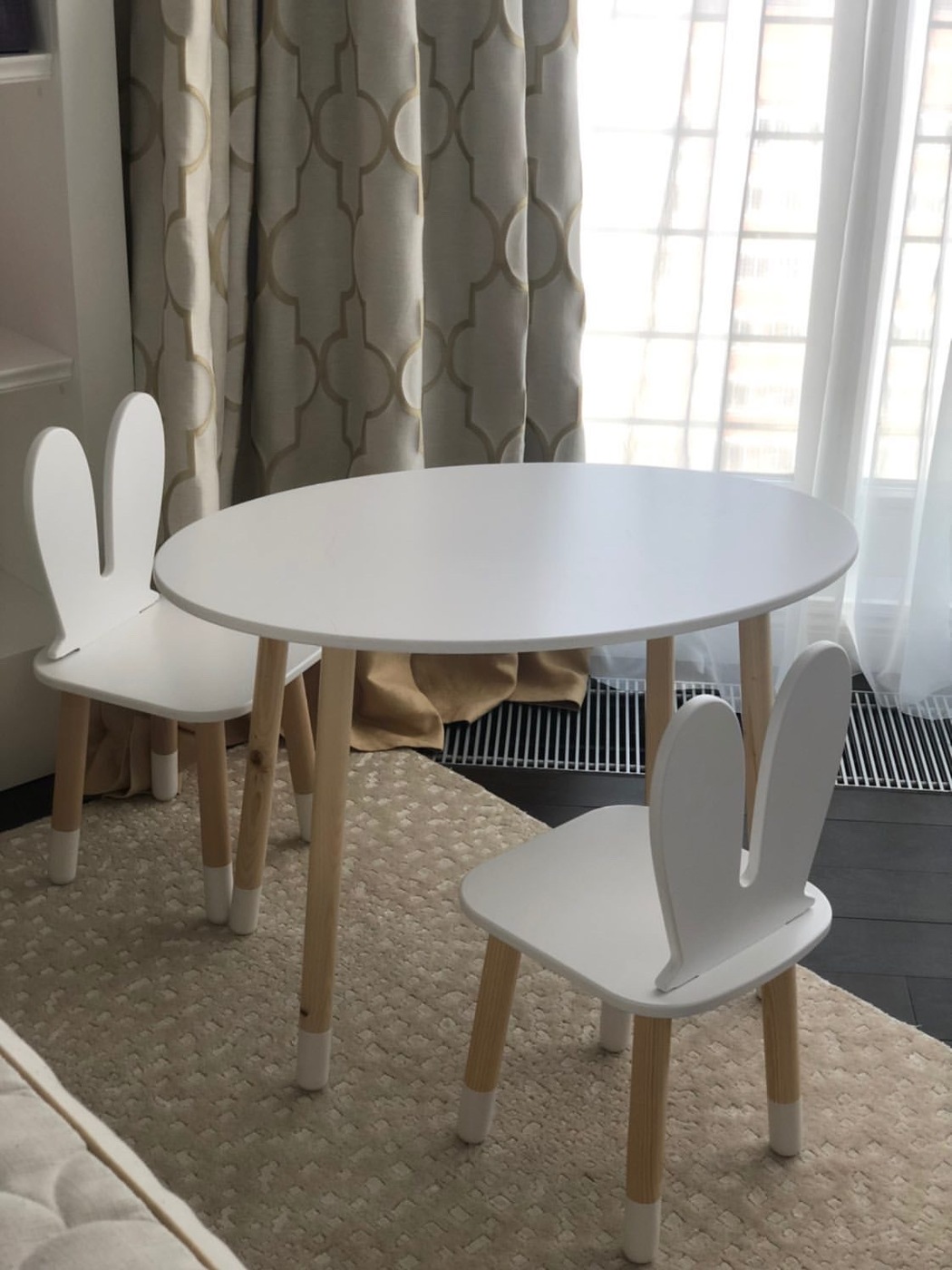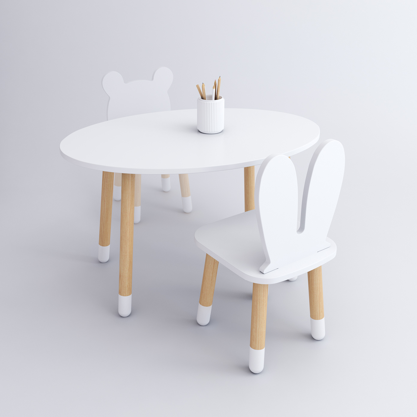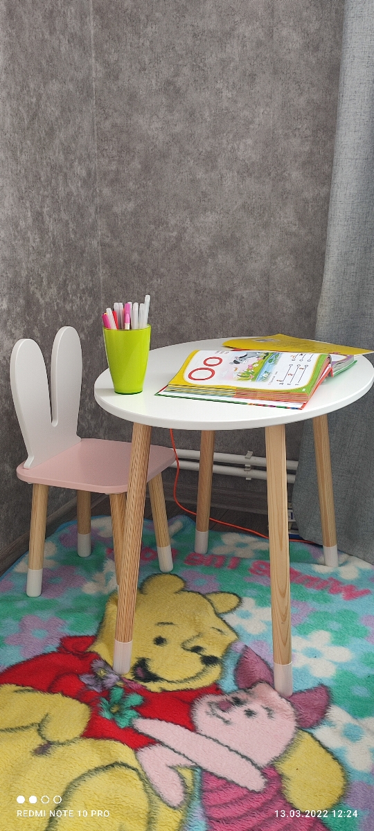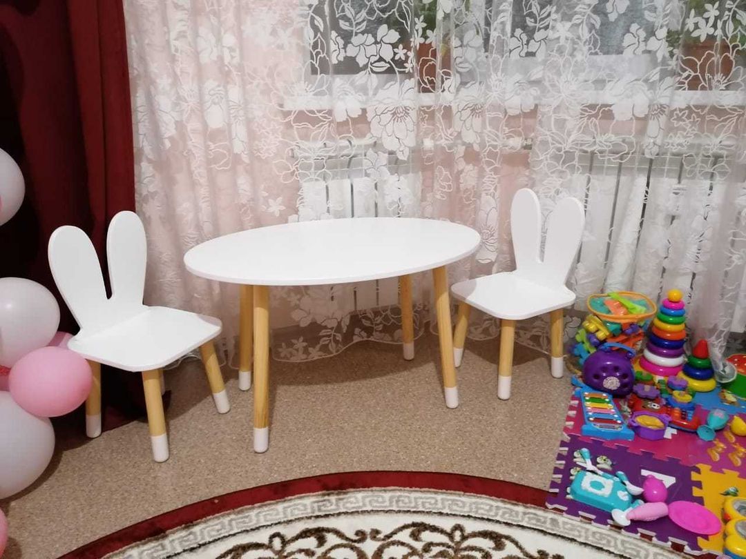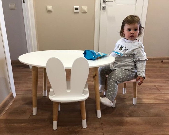 Комплект детской мебели DIMDOMkids, стол "Овал" белый + стул "Зайка" белый