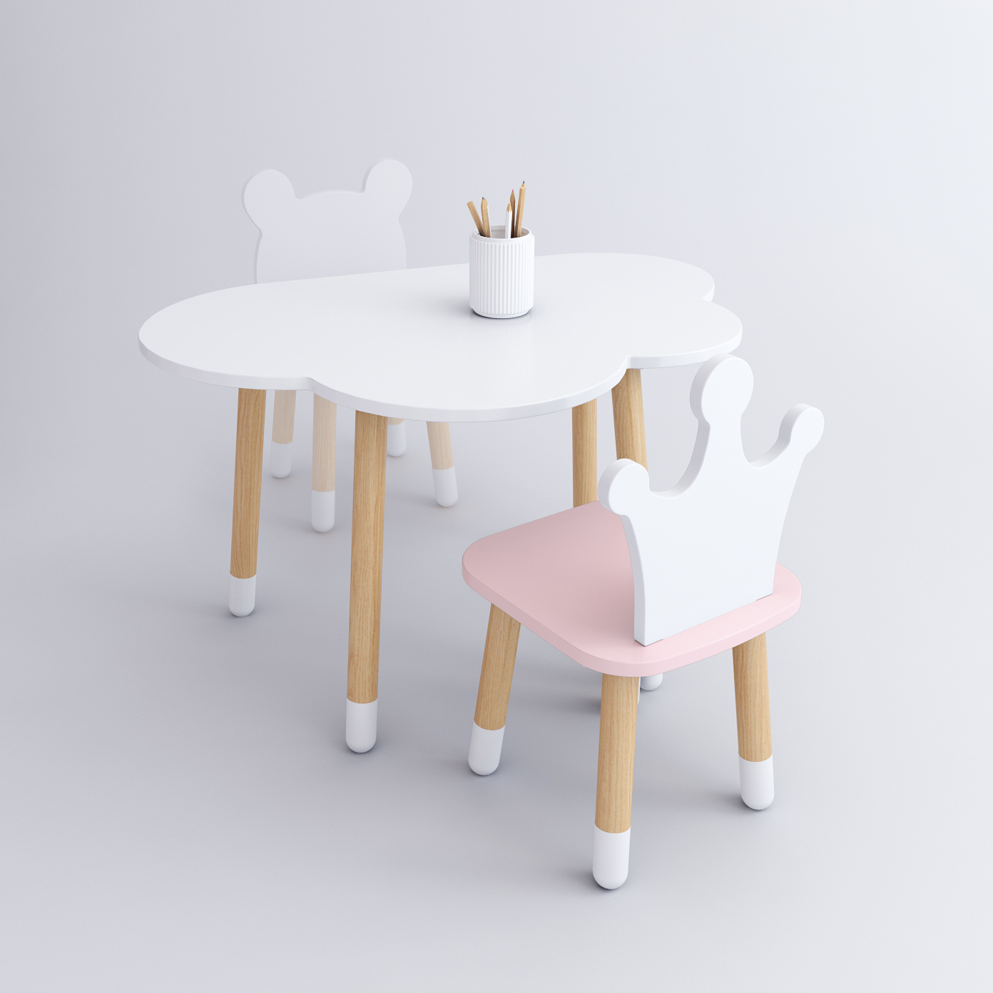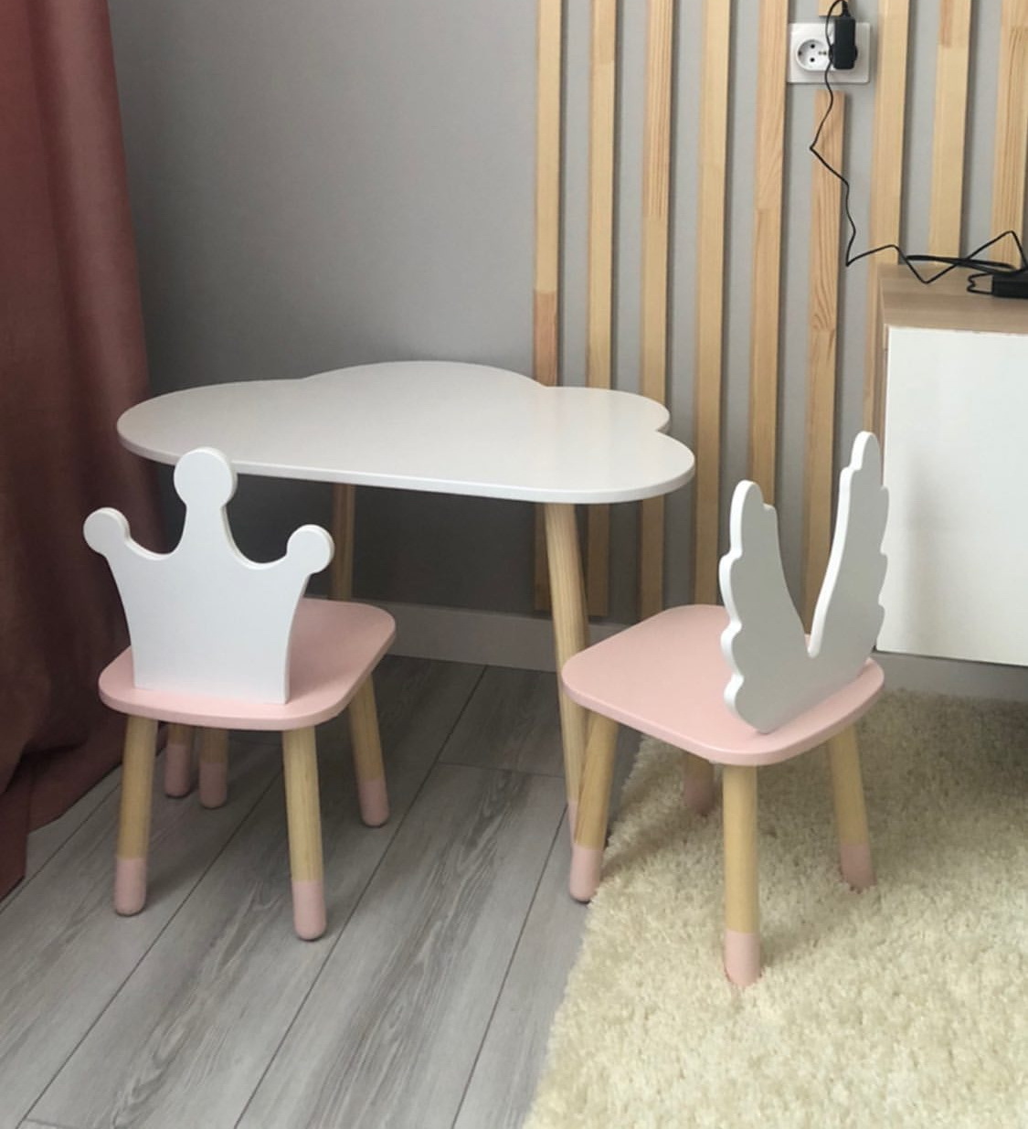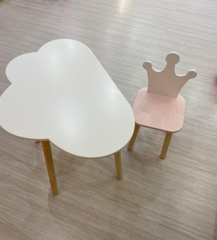 Комплект детской мебели DIMDOMkids, стол "Облако" белый + стул "Корона" розовый