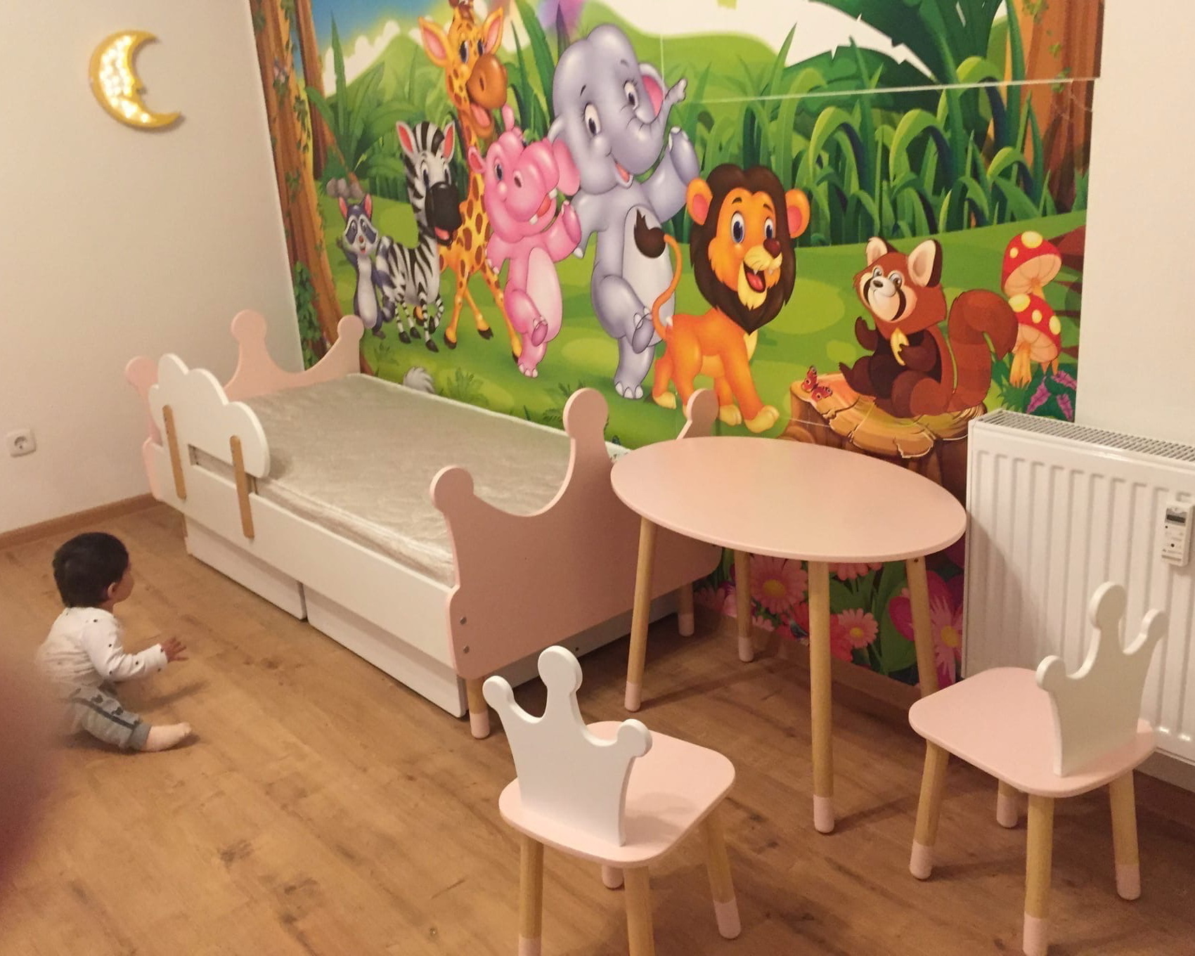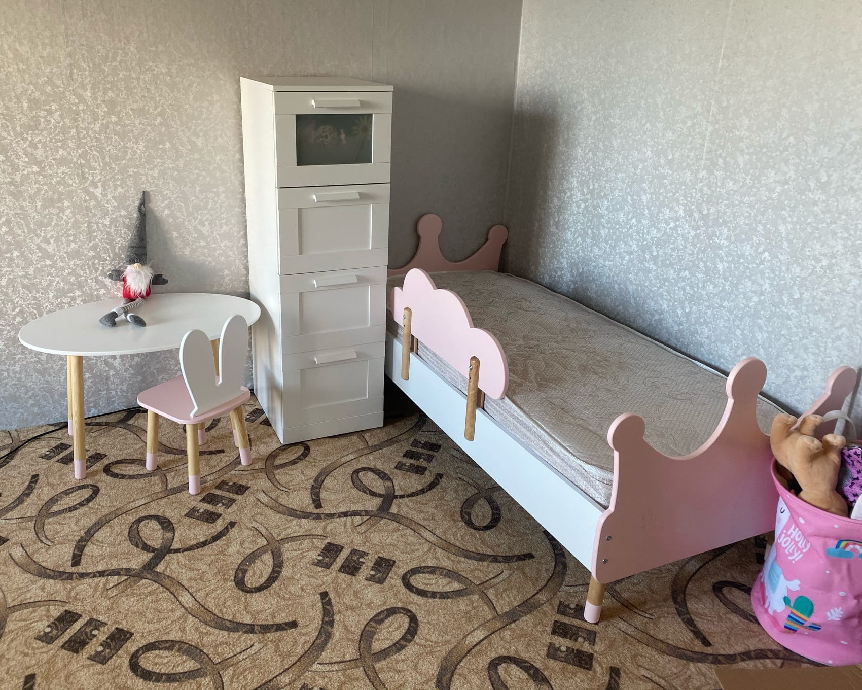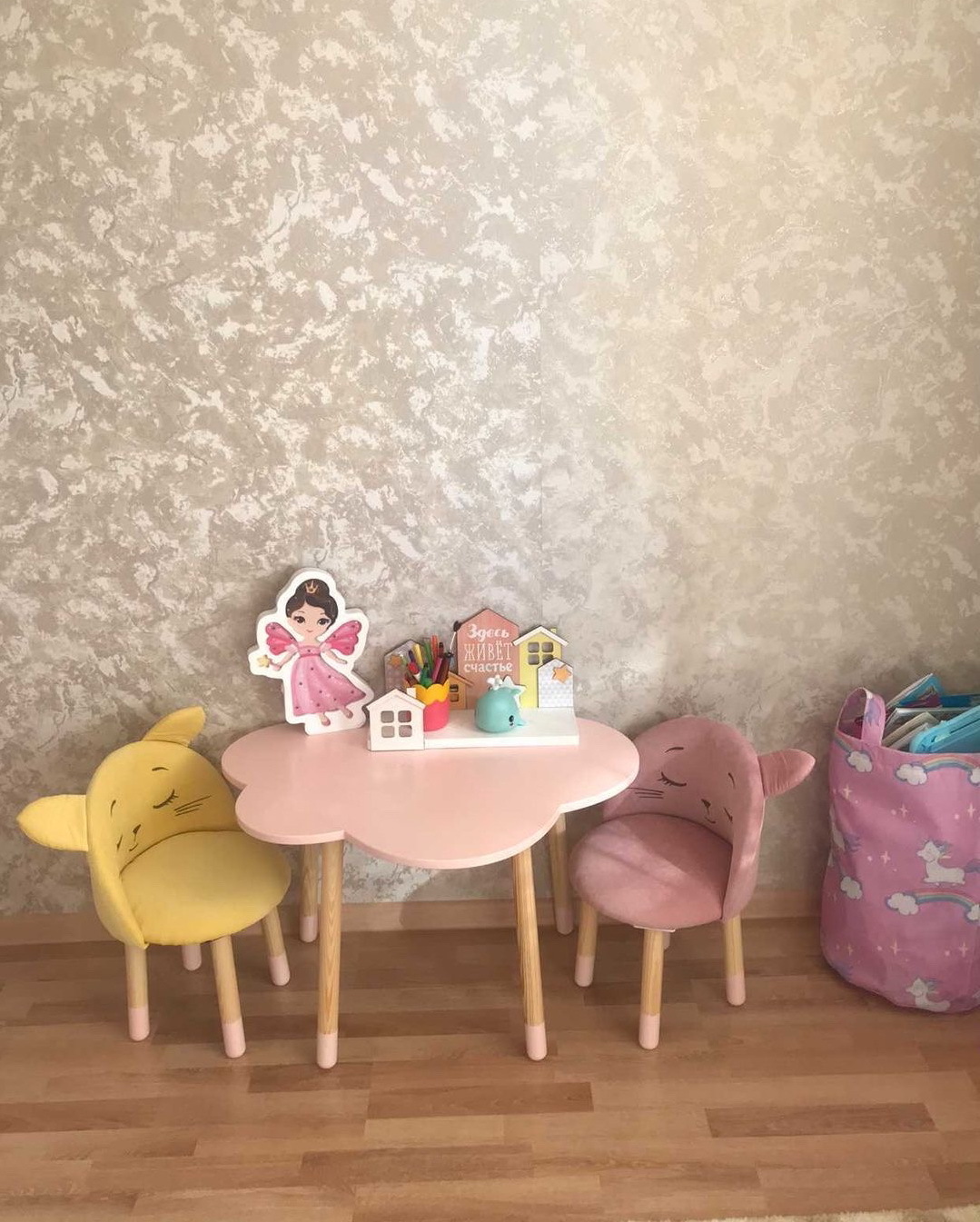 Комплект детской мебели DIMDOMkids, стол "Облако" белый + стул "Корона" розовый