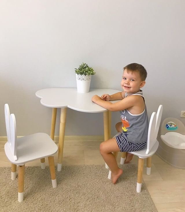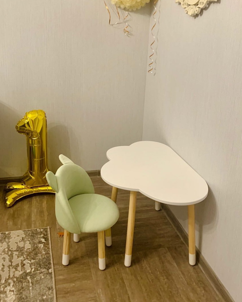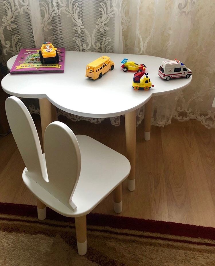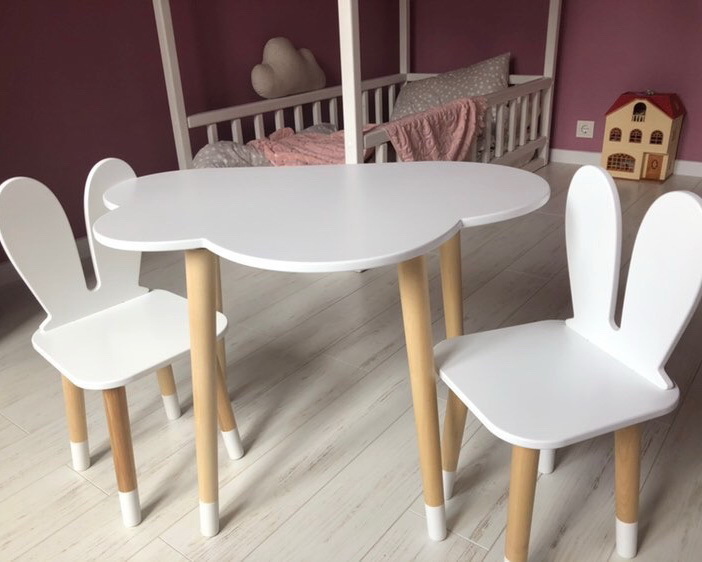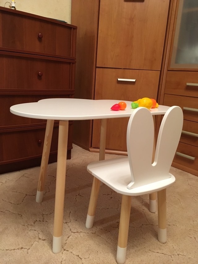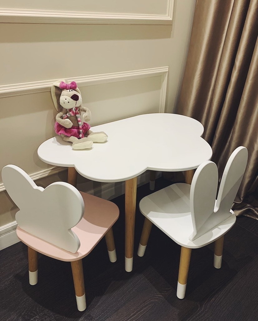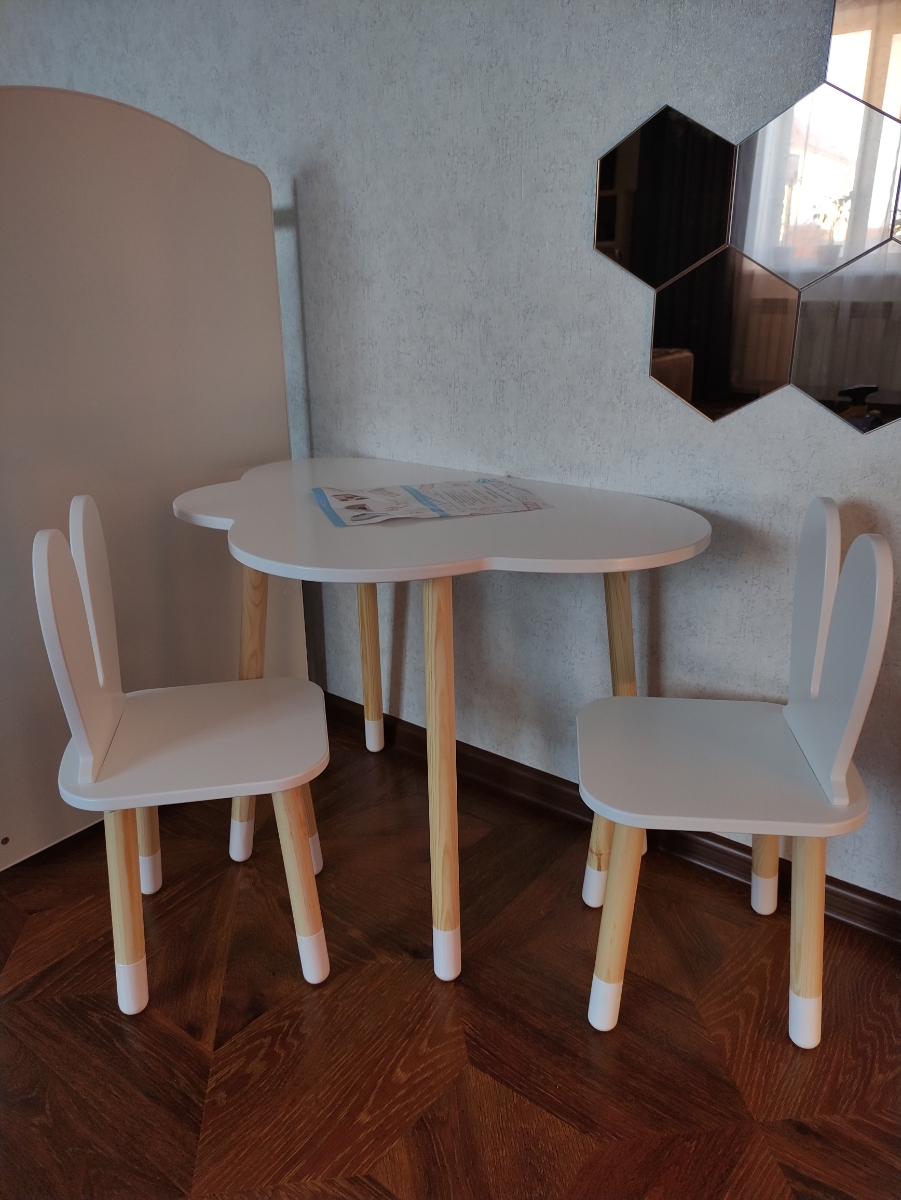 Комплект детской мебели DIMDOMkids, стол "Облако" белый + стул "Зайка" белый
