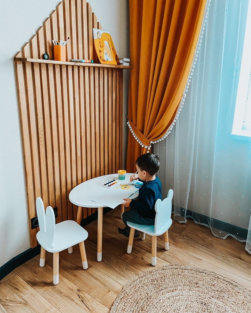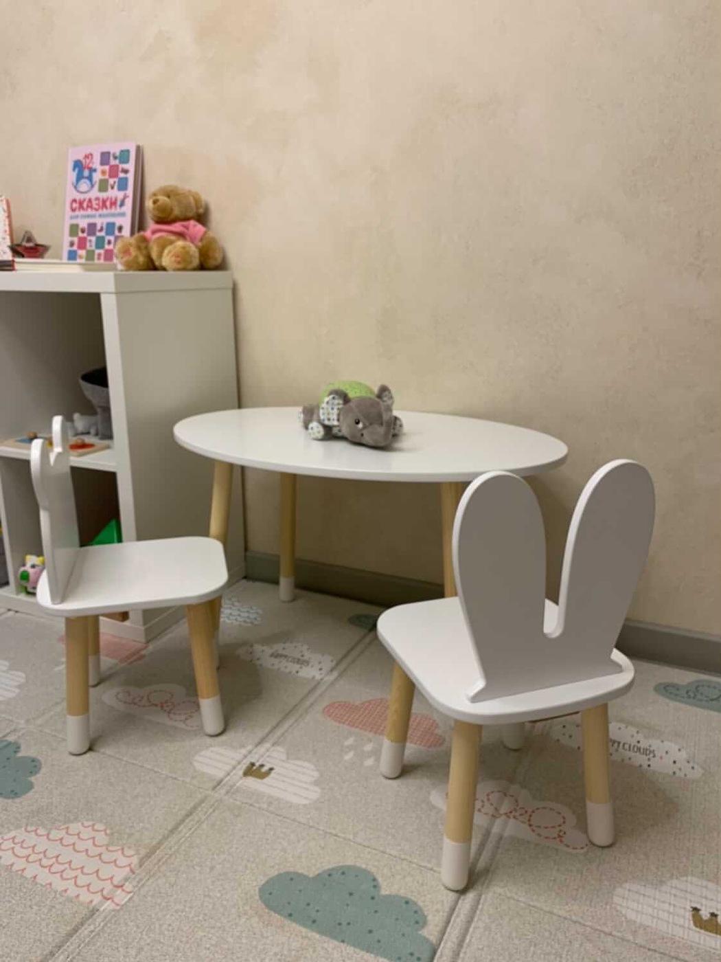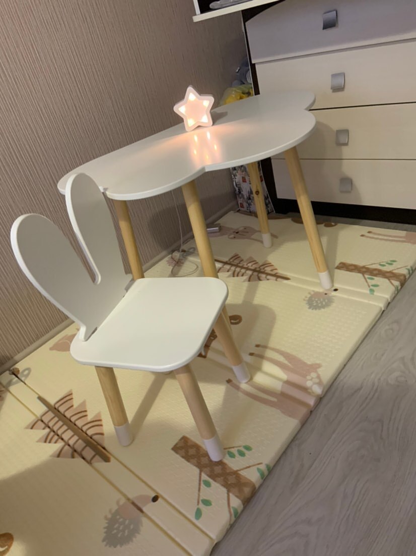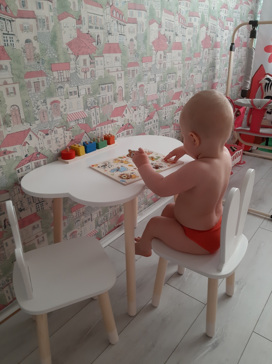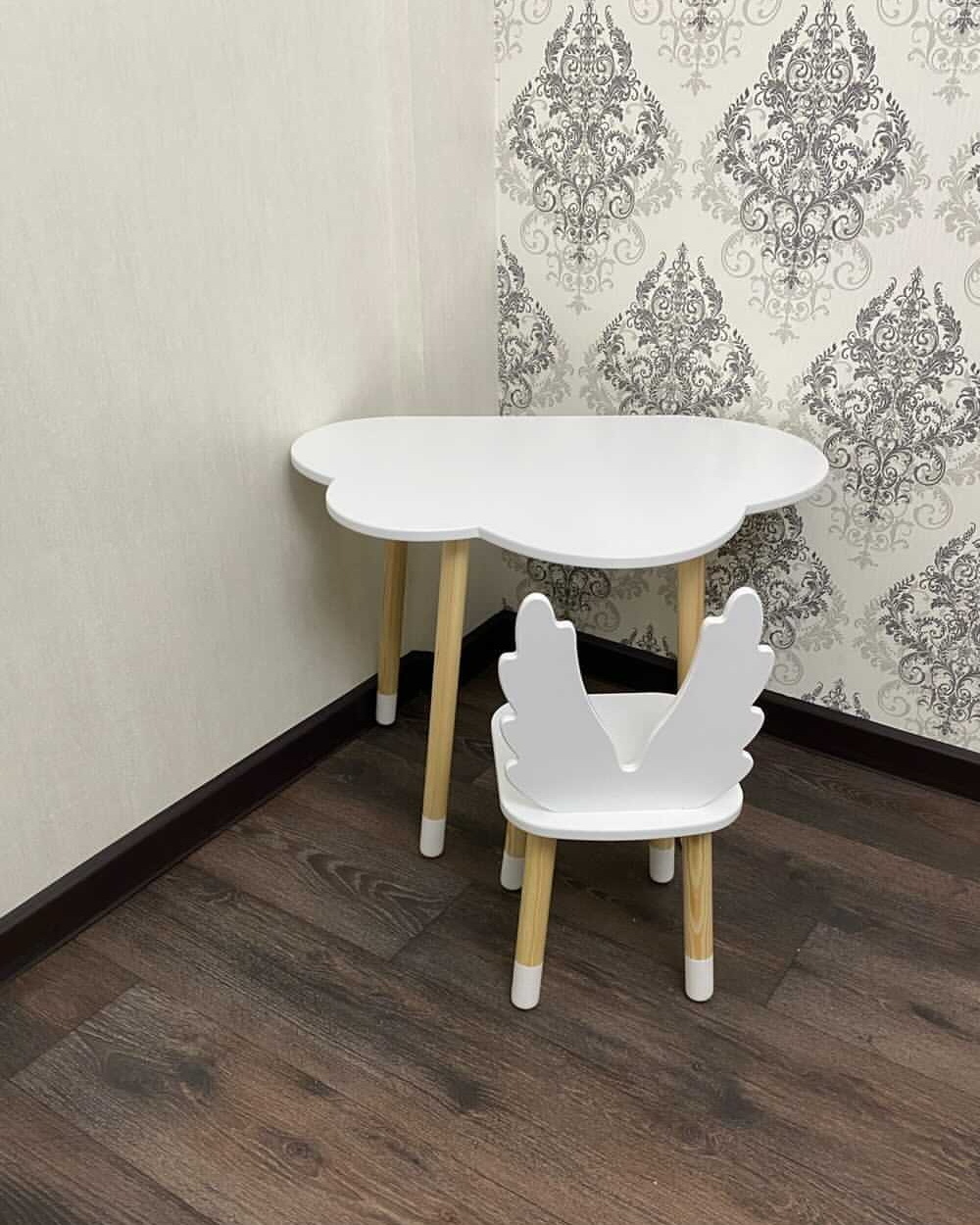 Комплект детской мебели DIMDOMkids, стол "Облако" белый + стул "Зайка" белый