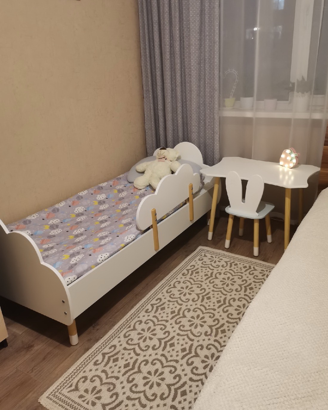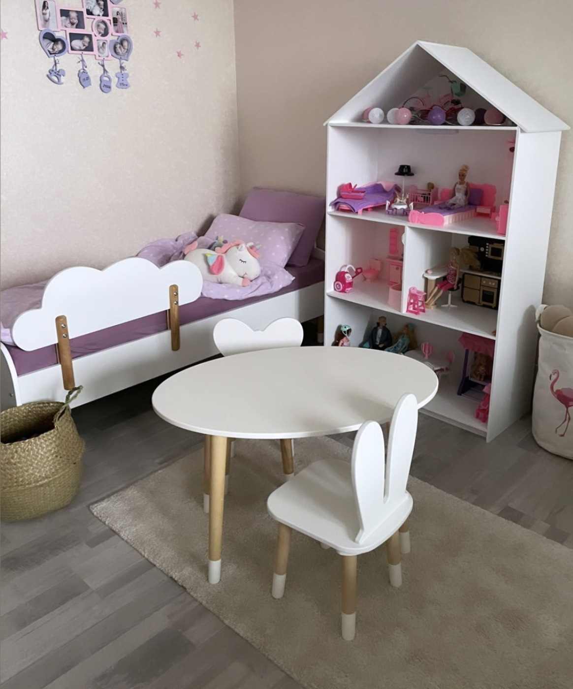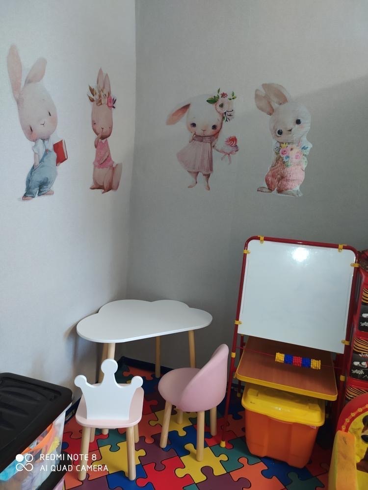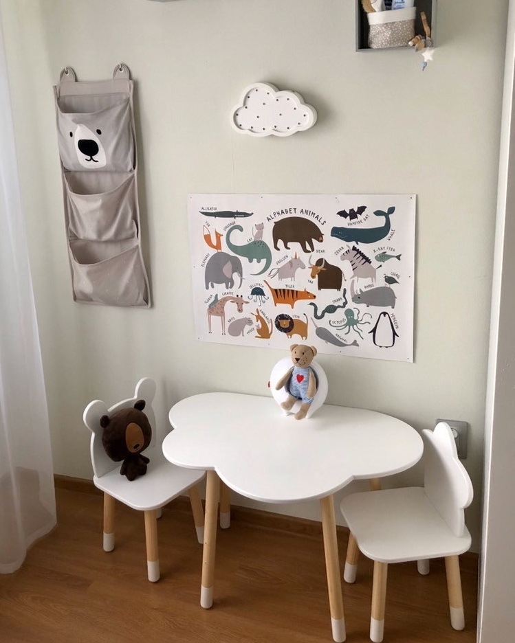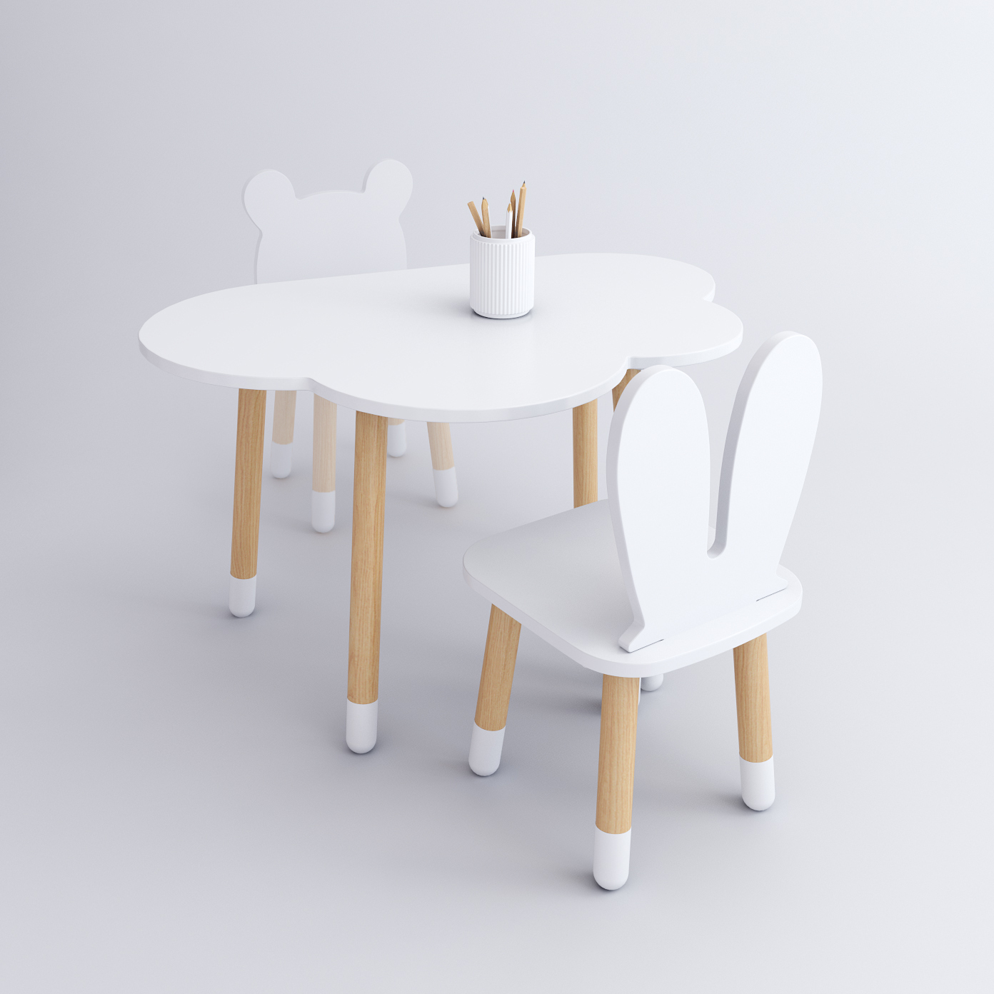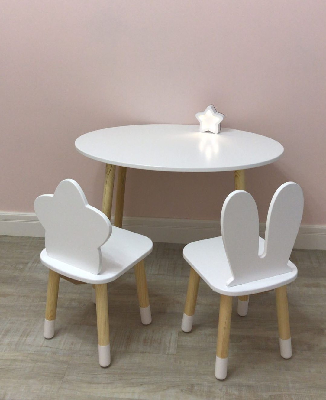 Комплект детской мебели DIMDOMkids, стол "Облако" белый + стул "Зайка" белый