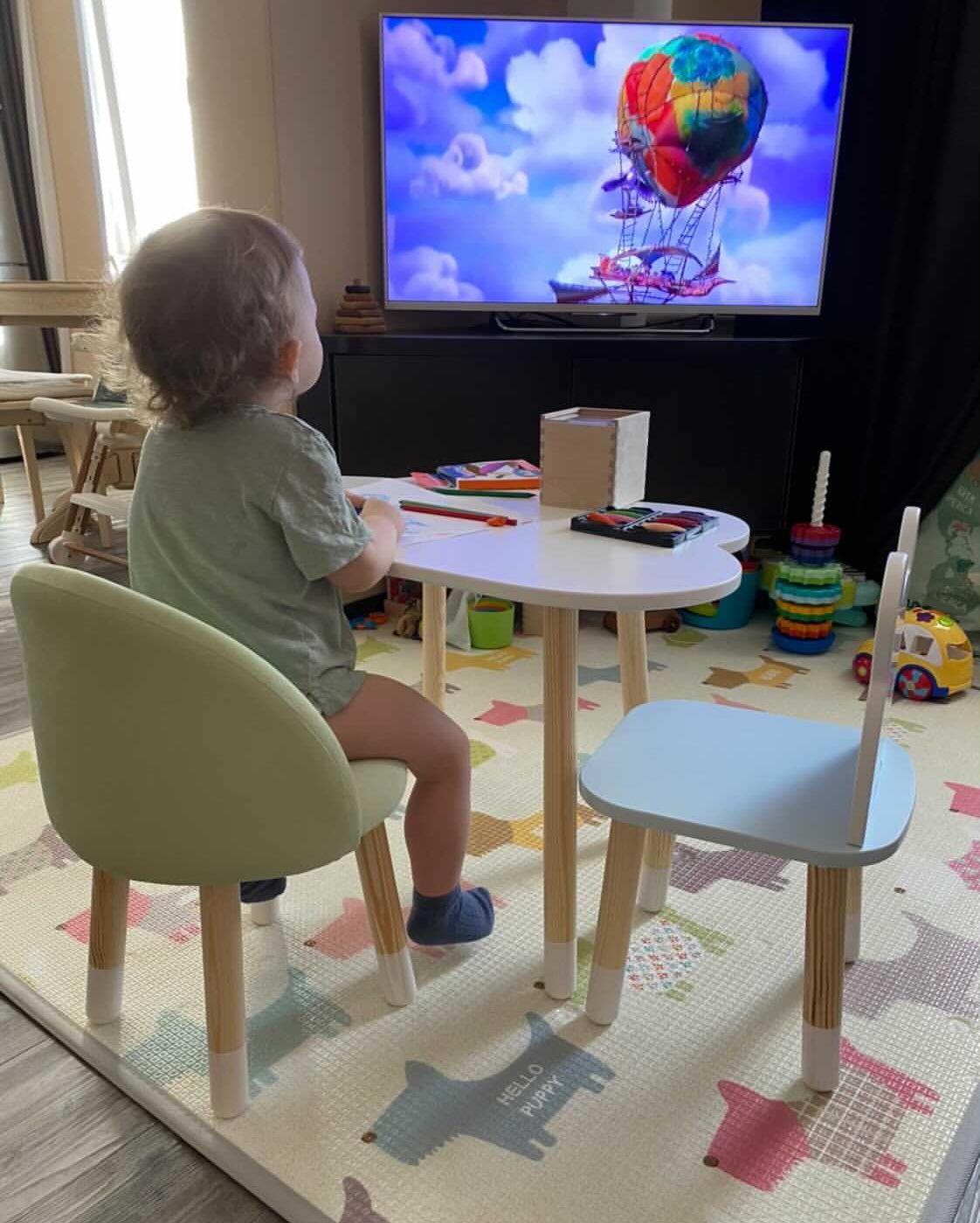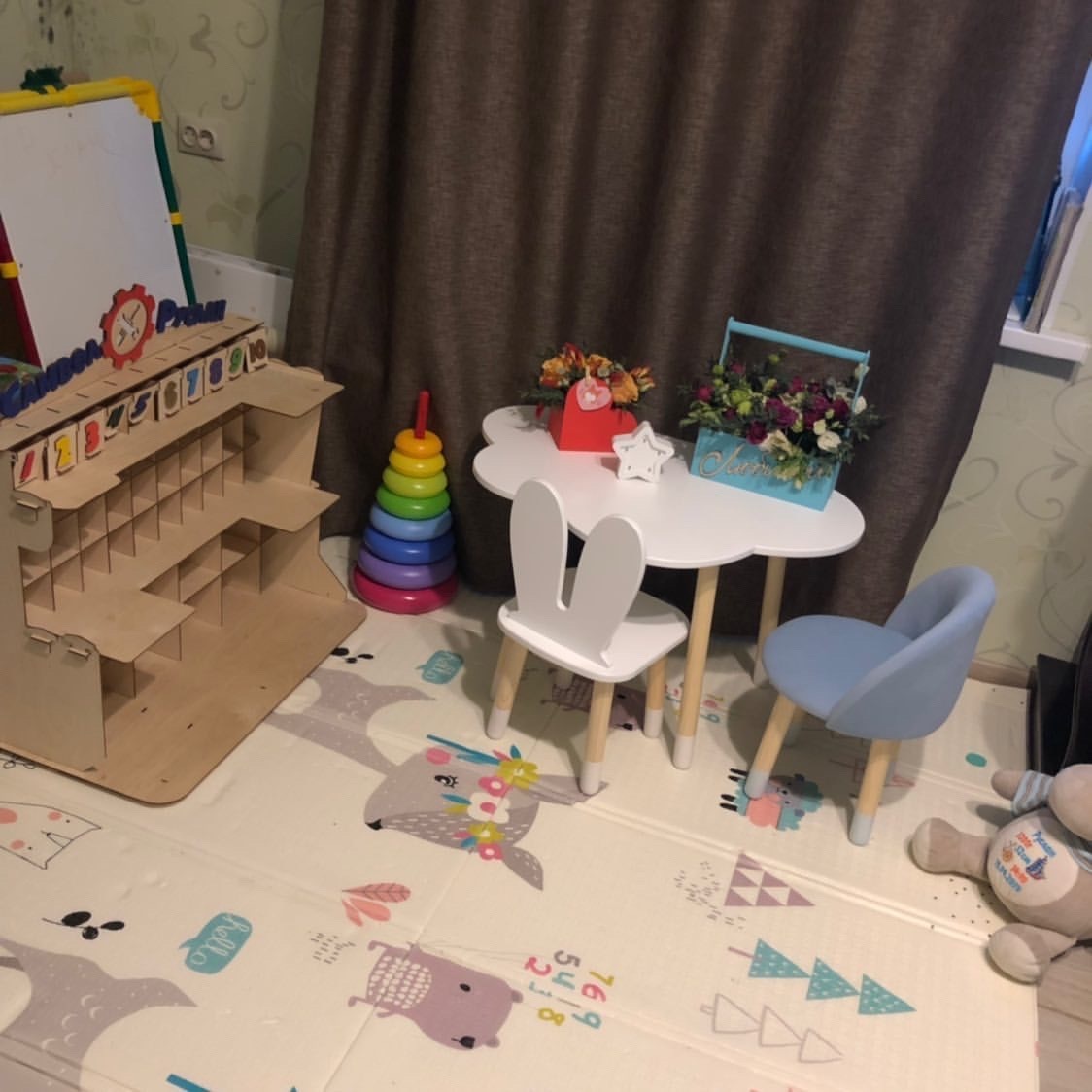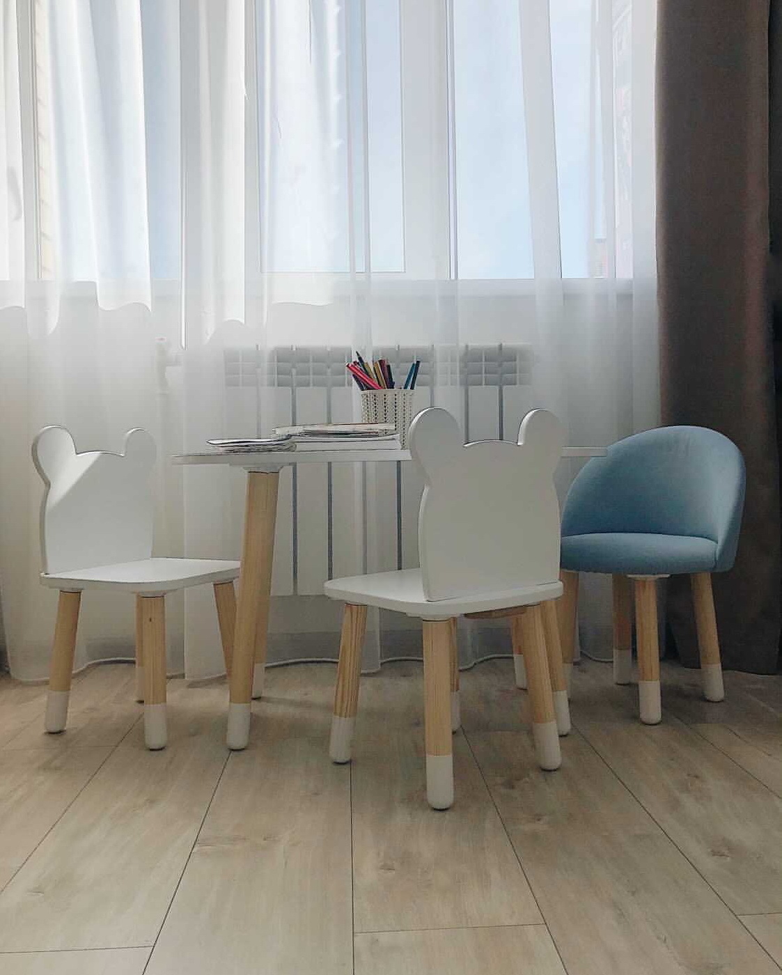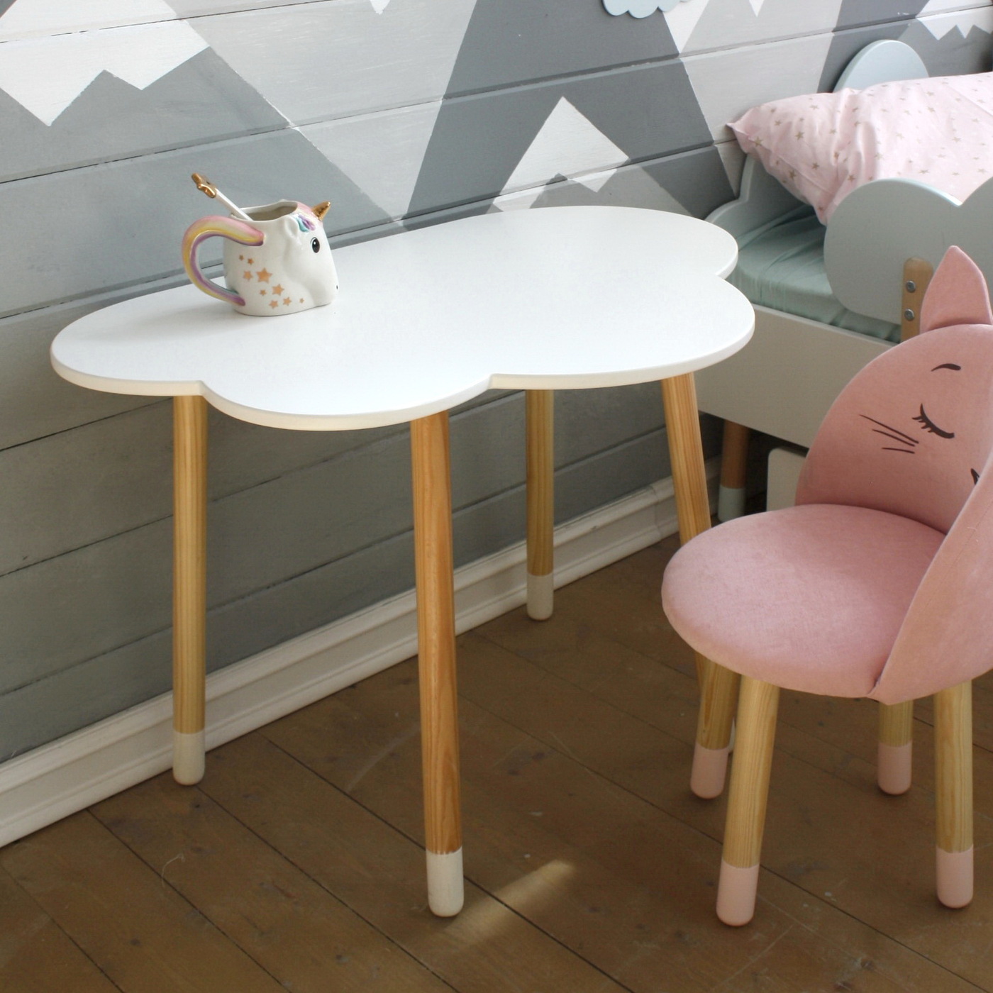 Комплект детской мебели DIMDOMkids, стол "Облако" белый + стул "Зайка" белый