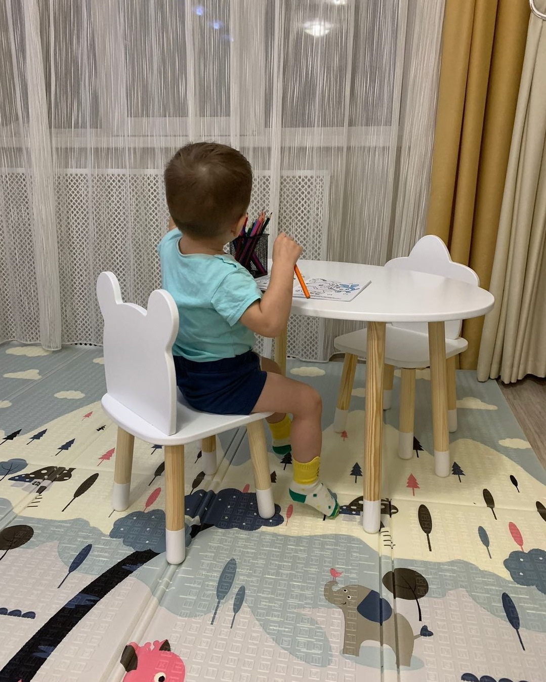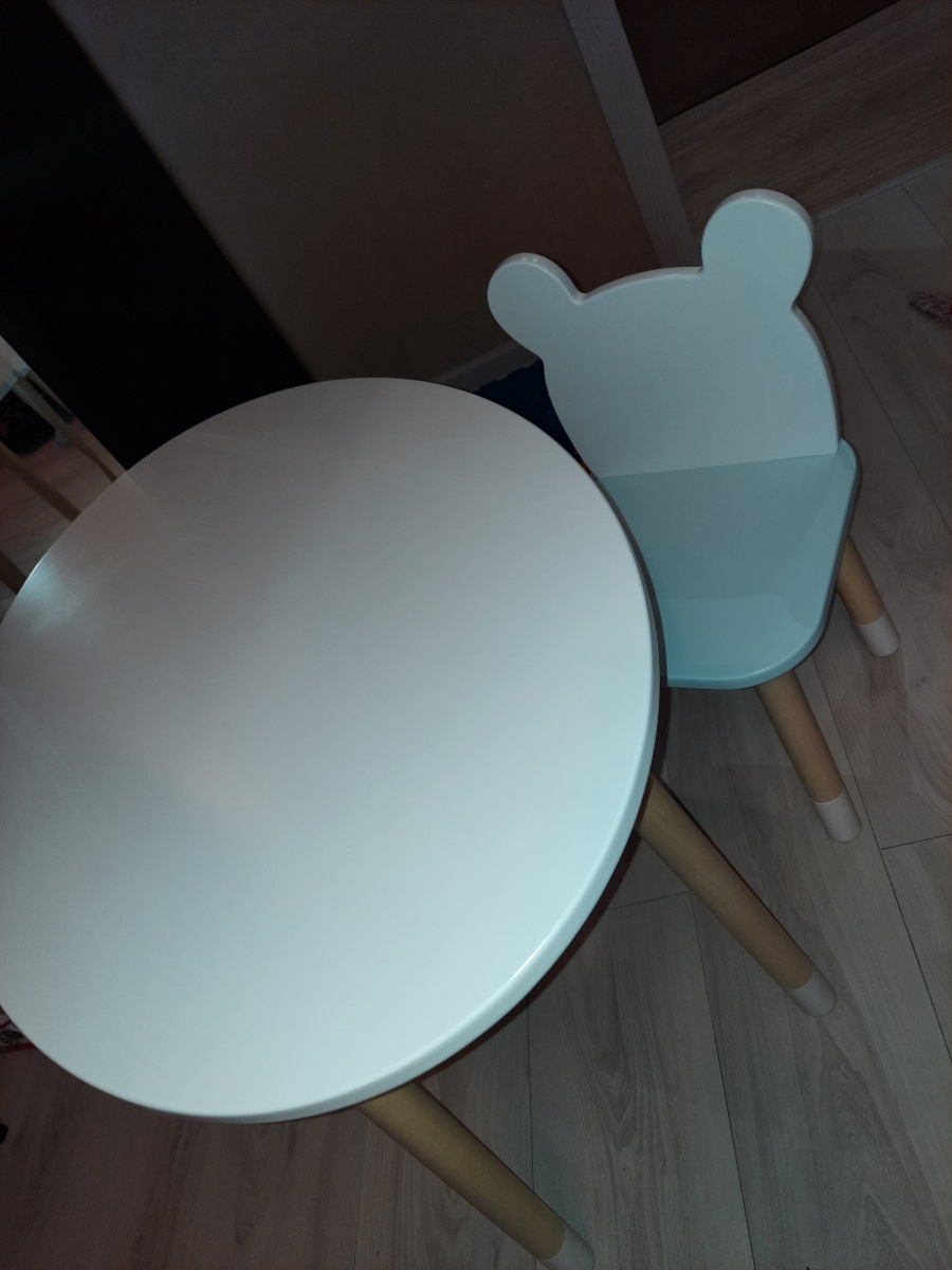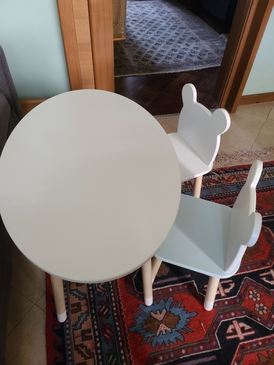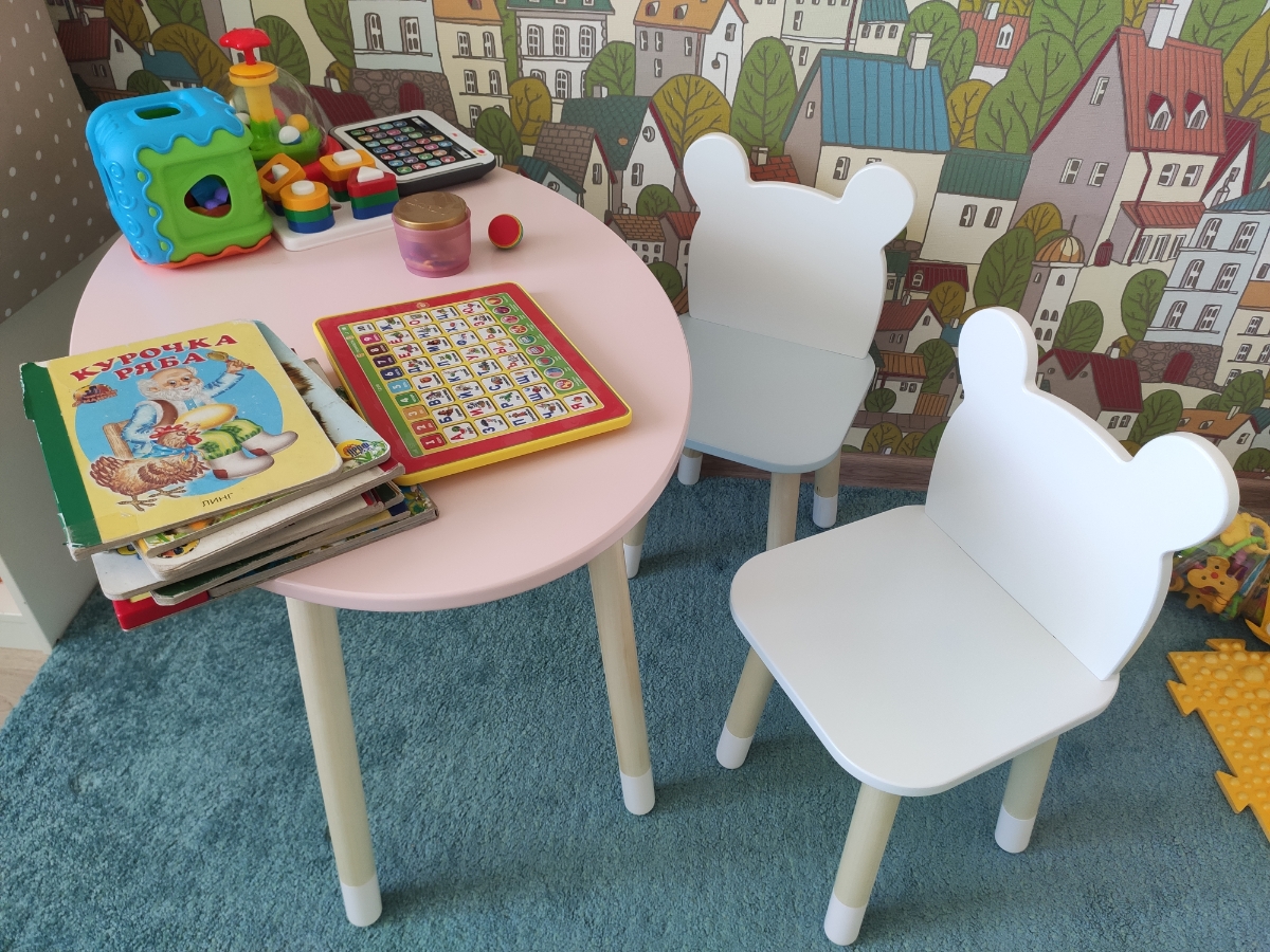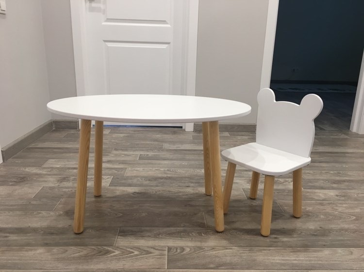 Комплект детской мебели DIMDOMkids, стол "Овал" белый + стул "Мишка" белый
