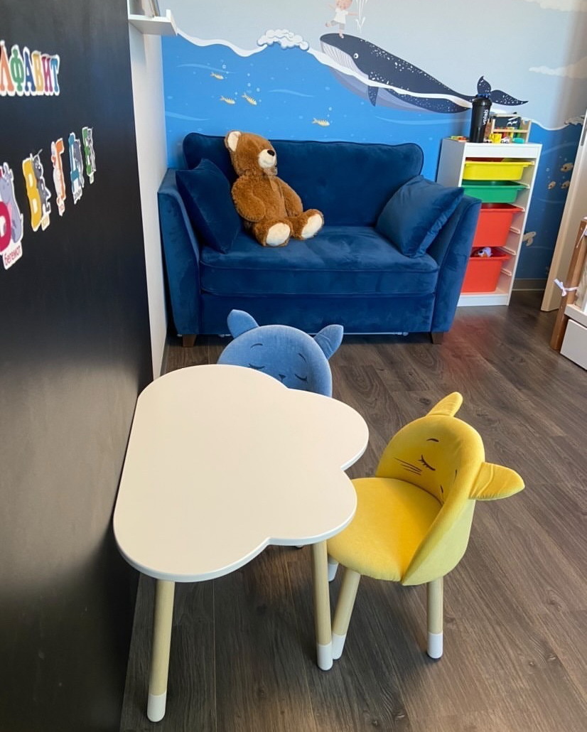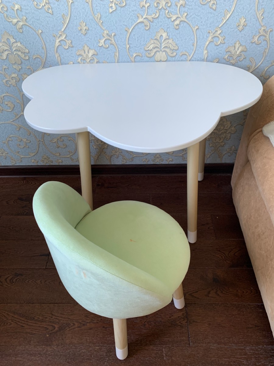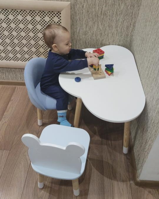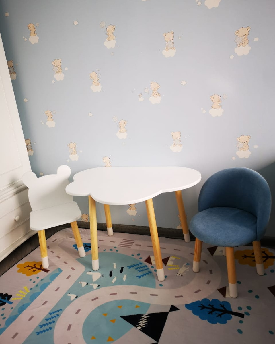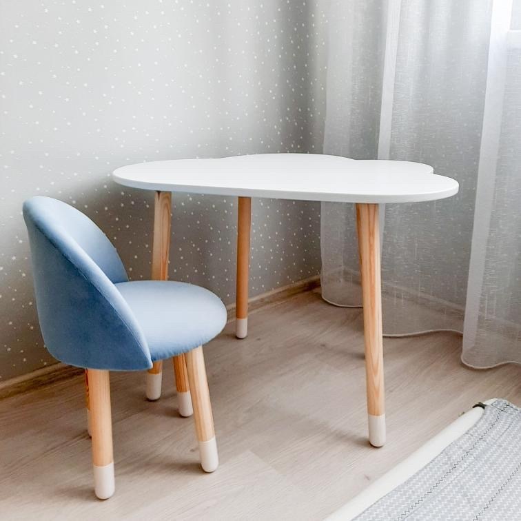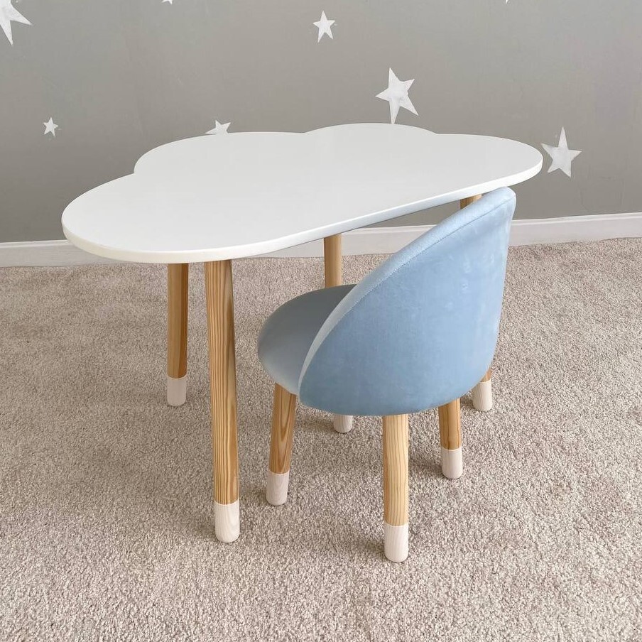 Комплект детской мебели DIMDOMkids, стол "Облако" белый + Мягкий стульчик Голубой