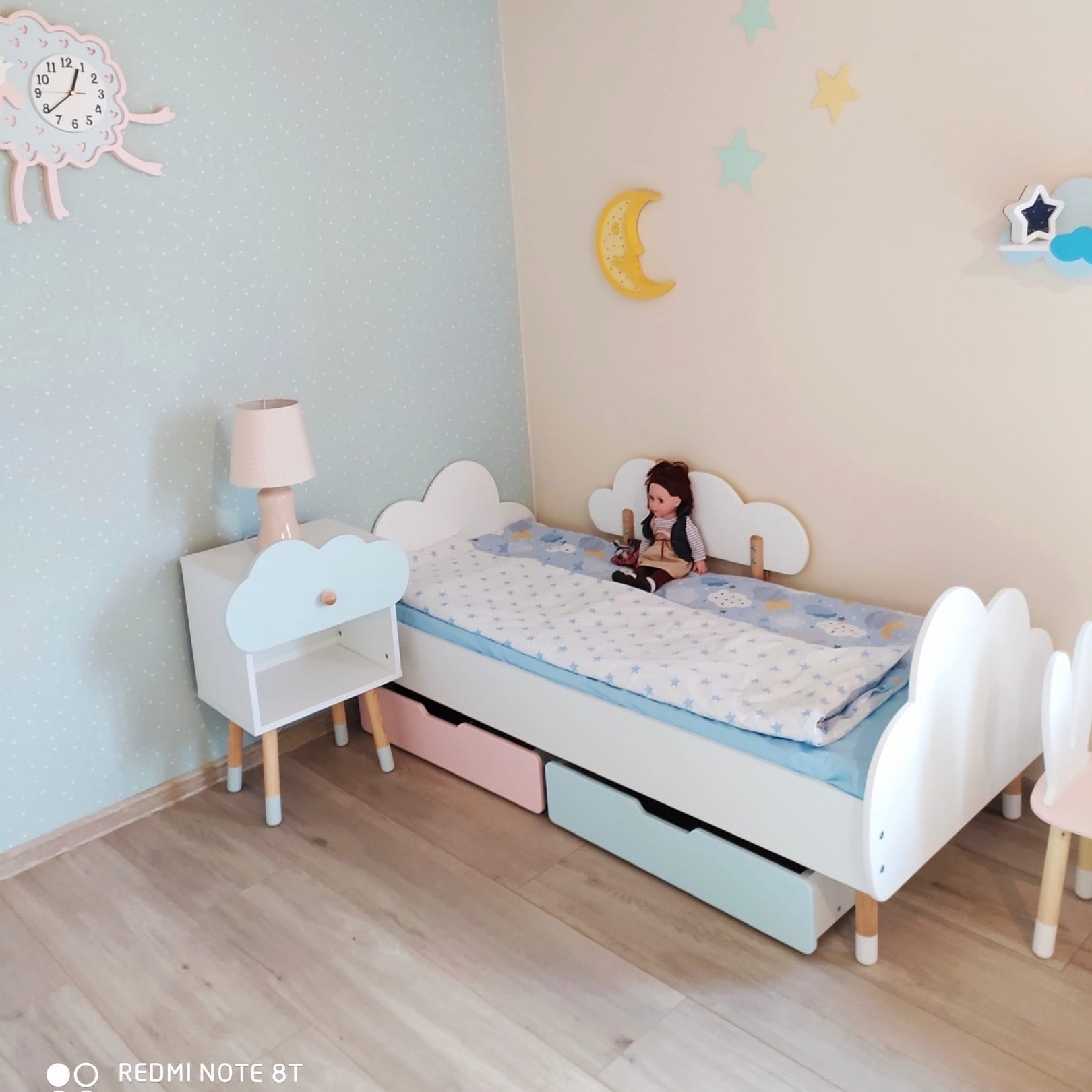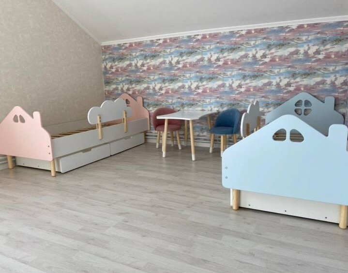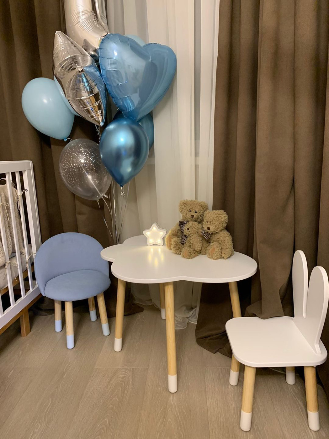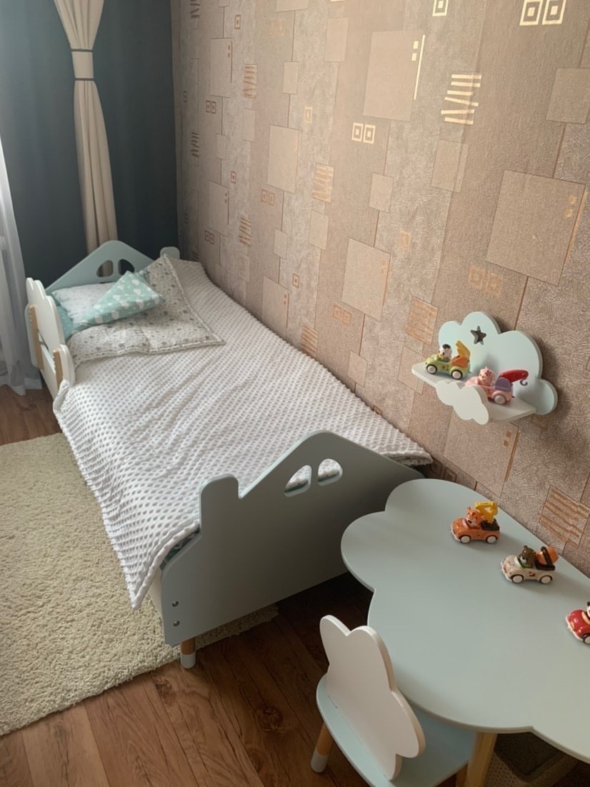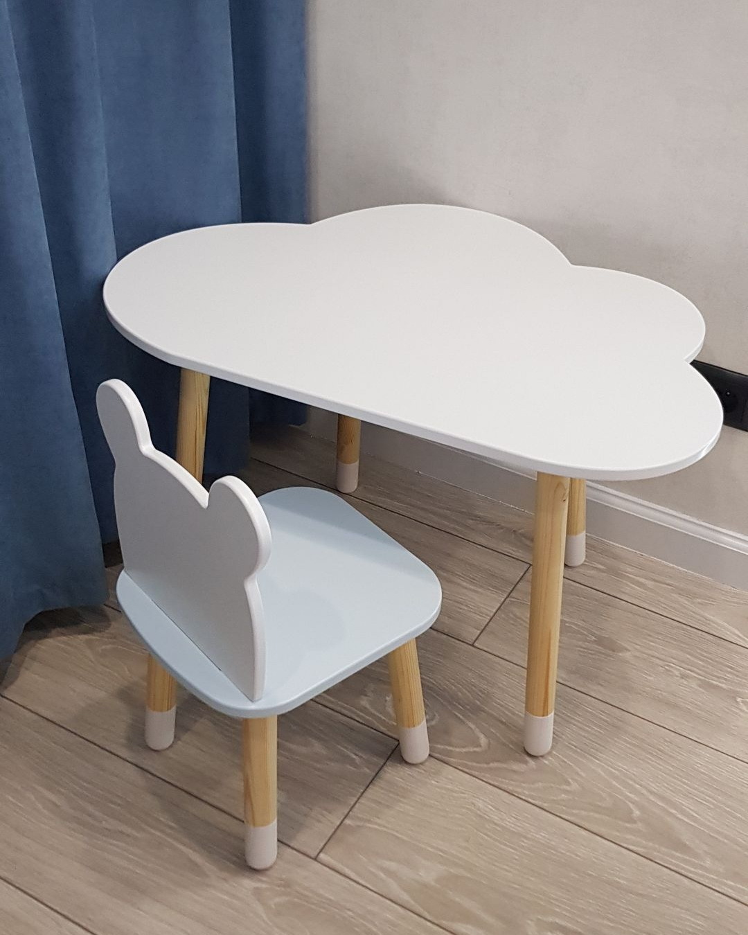 Комплект детской мебели DIMDOMkids, стол "Облако" белый + Мягкий стульчик Голубой