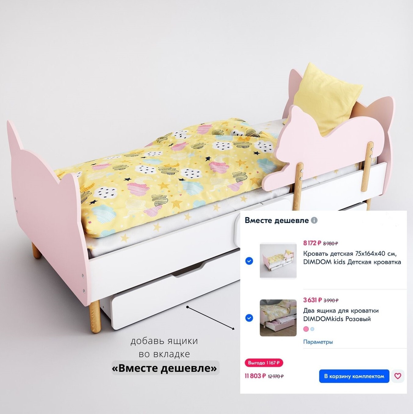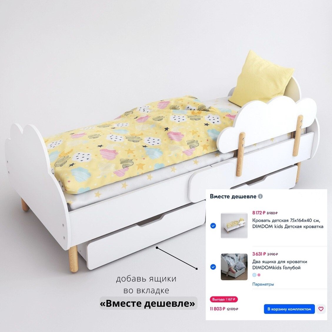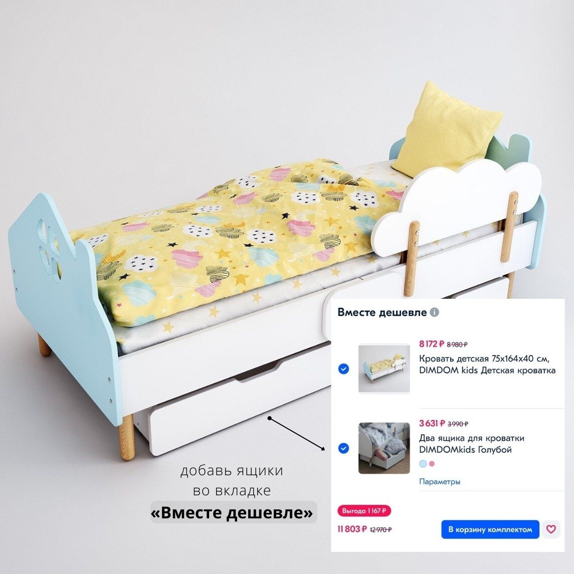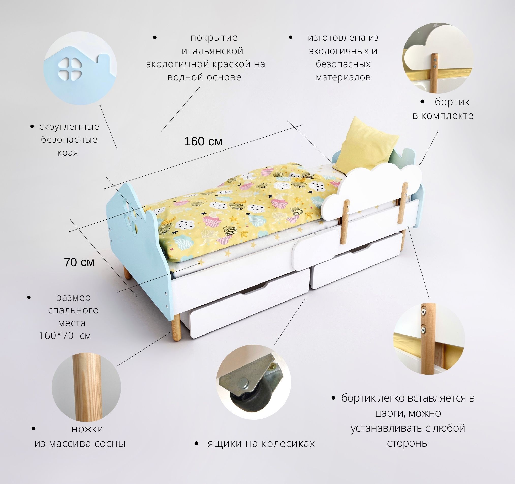 Кровать детская 75х164х40 см, DIMDOM kids Детская кроватка