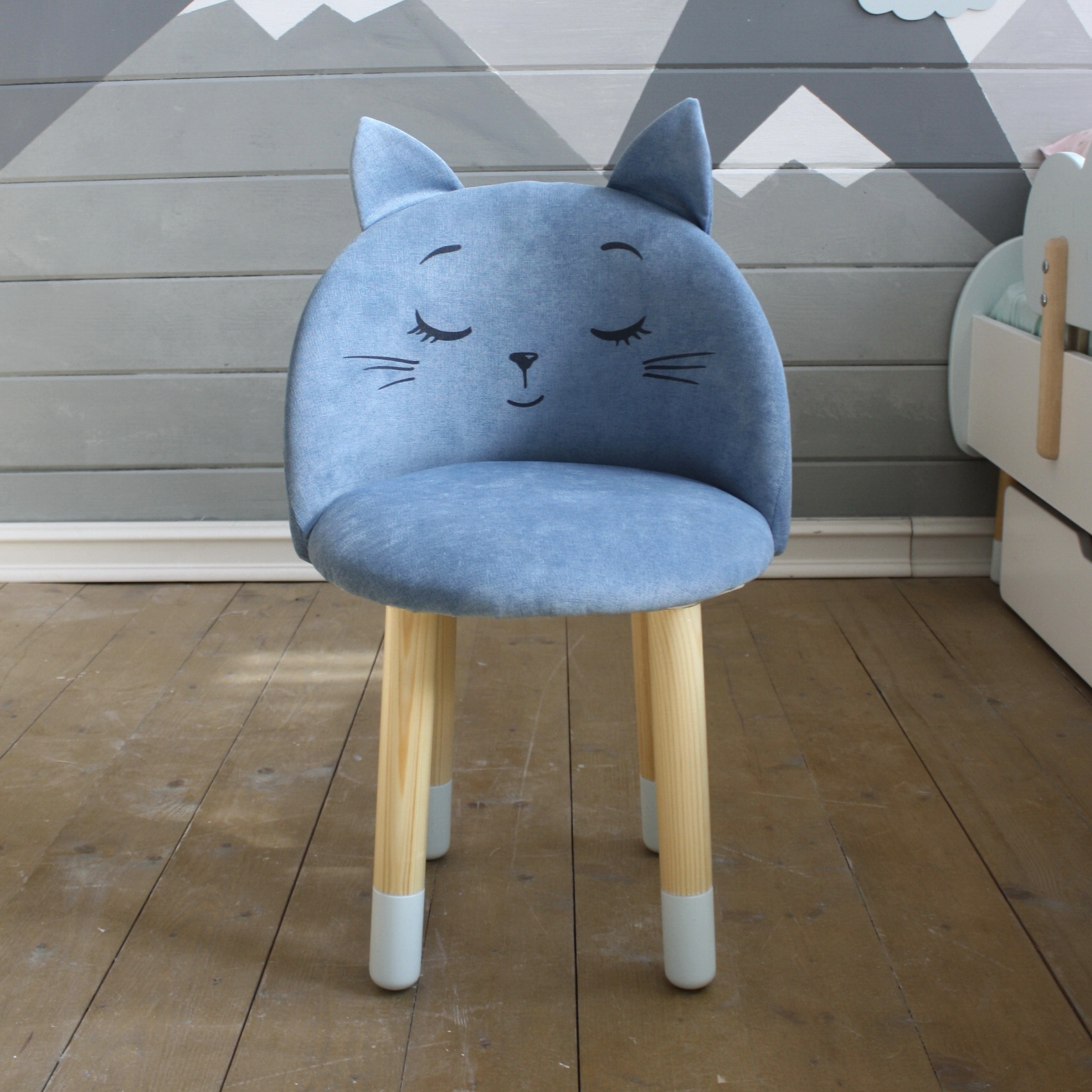 Детский мягкий стул с "Ушками и мордочкой" DIMDOMkids Голубой