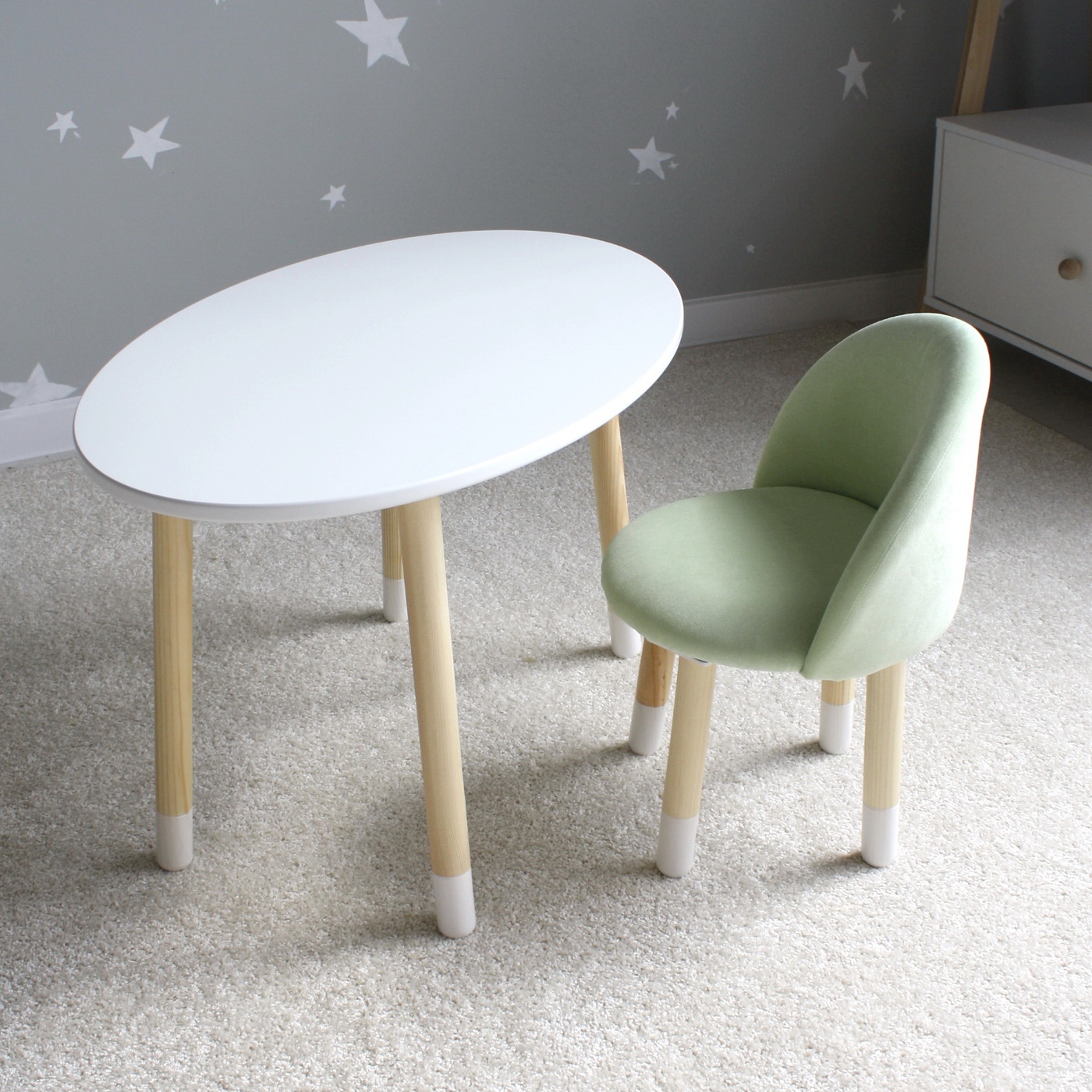 Комплект детской мебели DIMDOMkids, стол "Овал" белый + Мягкий стульчик Мятный