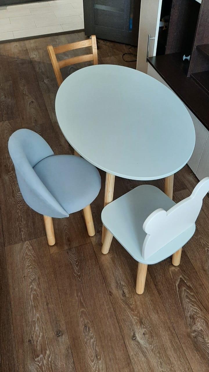 Комплект детской мебели DIMDOMkids, стол "Овал" белый + Мягкий стульчик Серый
