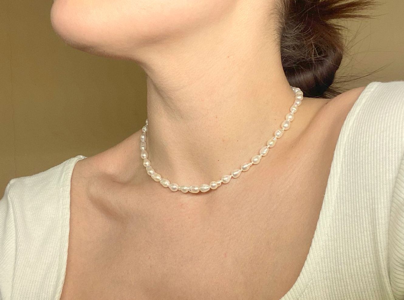ДИНОСА Бусы Ожерелье жемчуг Акоя 7х8мм