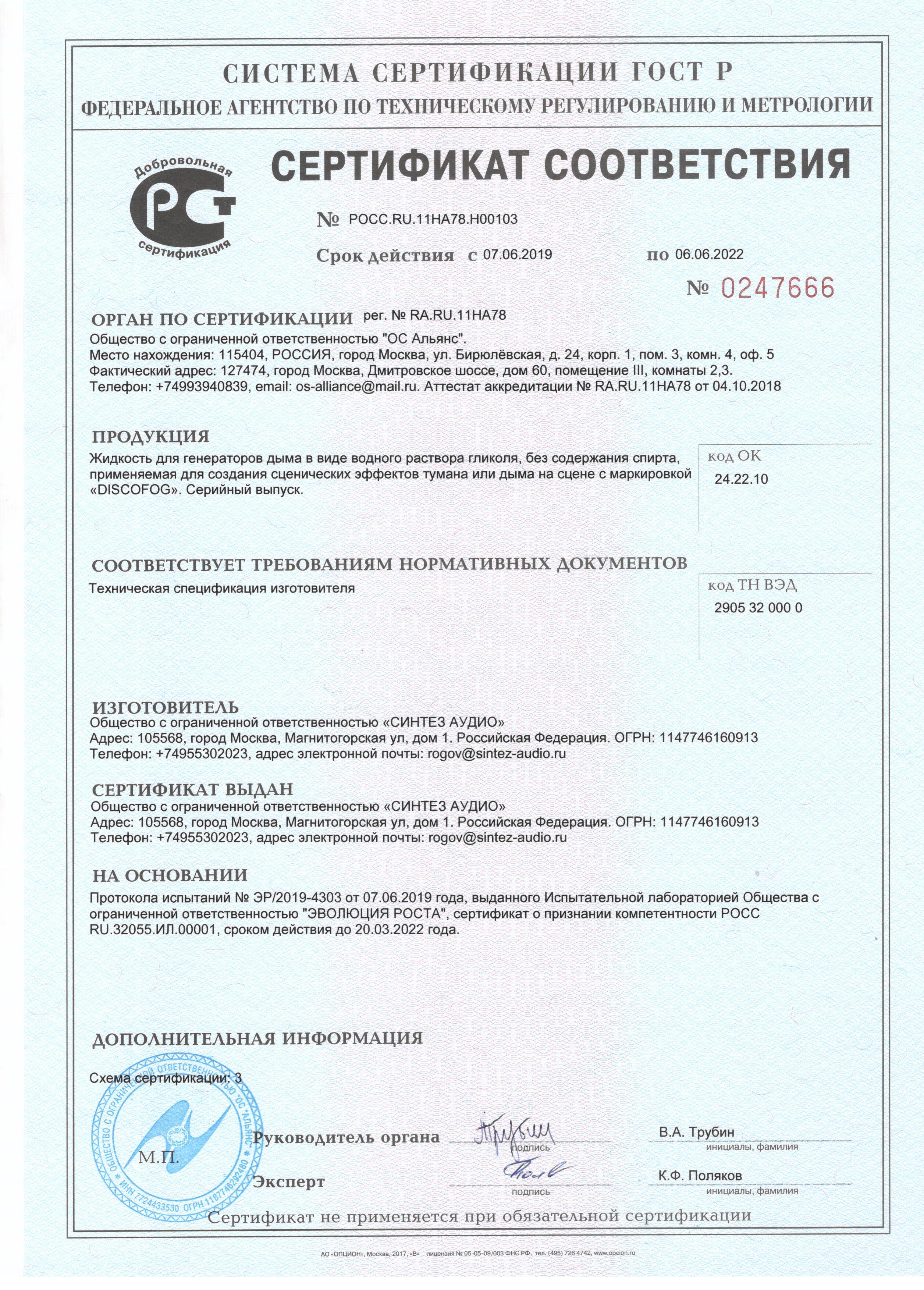 Жидкость для генератора дыма Disco Fog MEDIUM