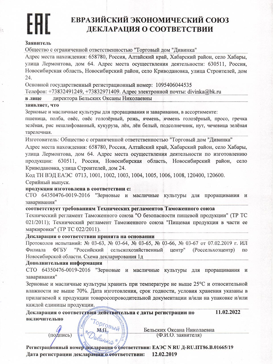 Овес голозерный для проращивания НАБОР 4 шт х 500 гр. Дивинка