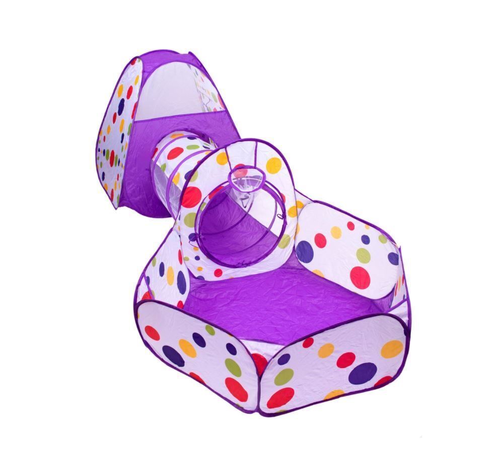 Детская игровая палатка 3 в 1 с тоннелем и манежем бело-фиолетовая