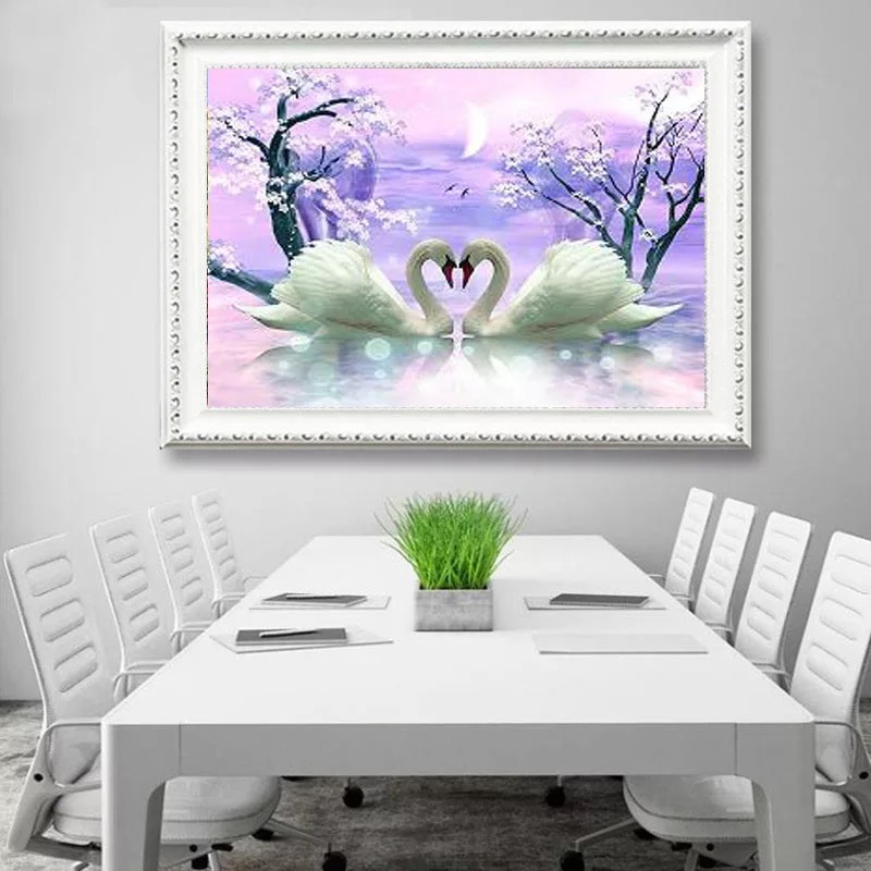 Алмазная мозаика на подрамнике "Лебеди с сакурой" 50х65 см