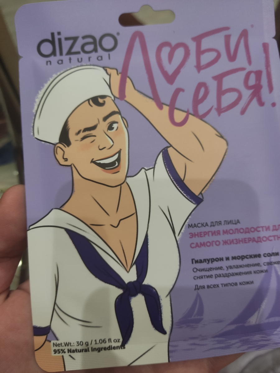 Dizao Маска для лица мужская Гиалурон и морские соли 5 шт., увлажнение, питание, очищение