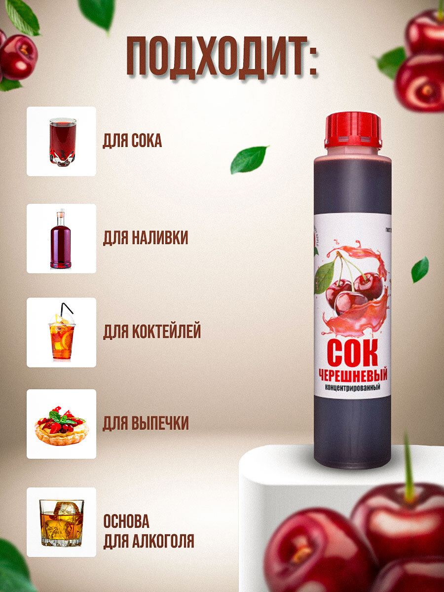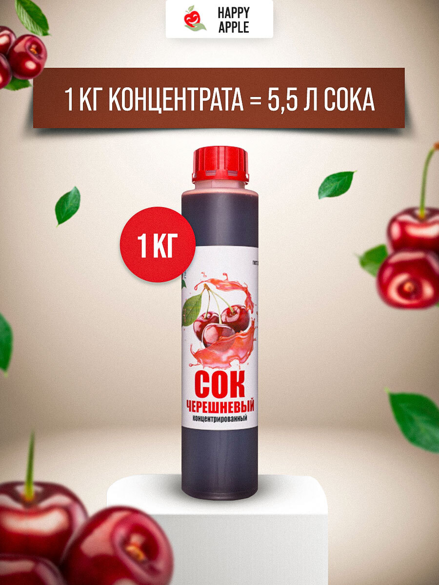 Сок концентрированный/ Концентрат сока Черешневый, кисл. 2,0-2,5% бутылка 1 кг (Джем&KO/Happy Apple)