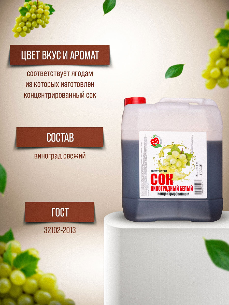 Концентрат сока виноградный белый 5 килограмм