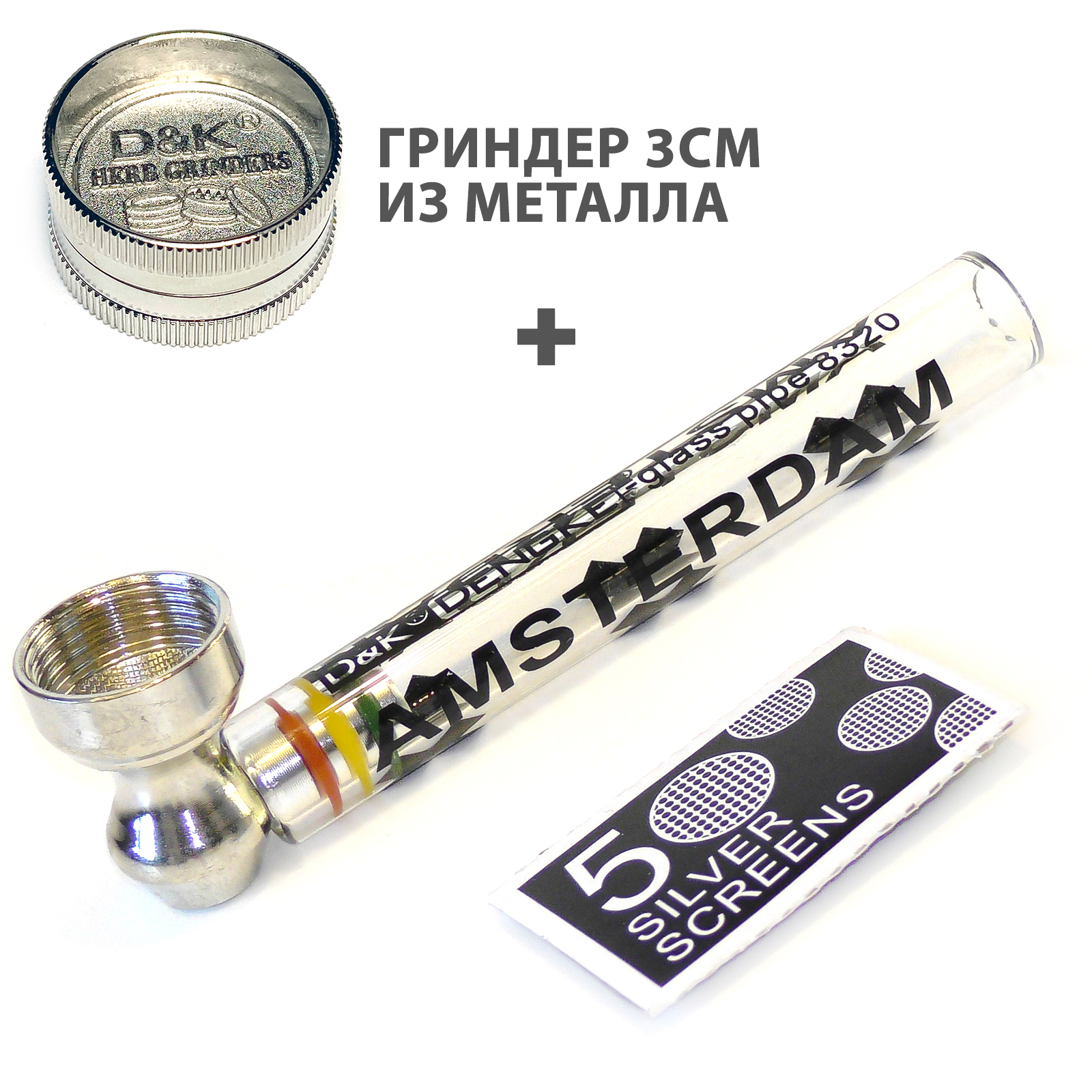 Курительная трубка D&K Amsterdam XXX 420 Acid 12 СМ + Гриндер + Сетки