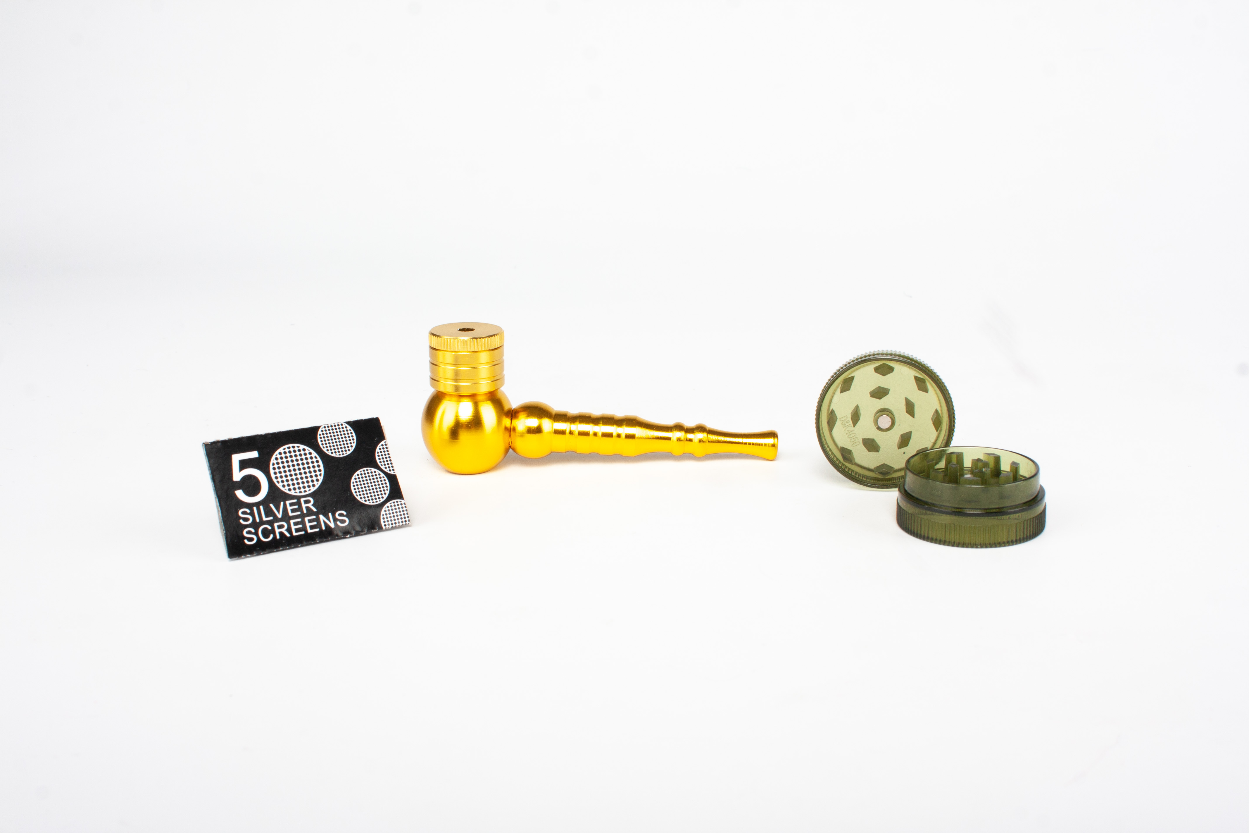 Трубка курительная металлическая в комплекте с сеточками и гриндером B260-2