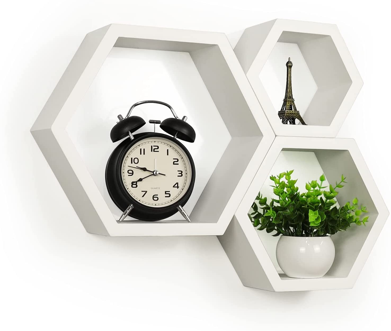 Полка настенная навесная набор 3 шт / Комплект полок 3 шт из массива сосны Белые, 32х28х7 см