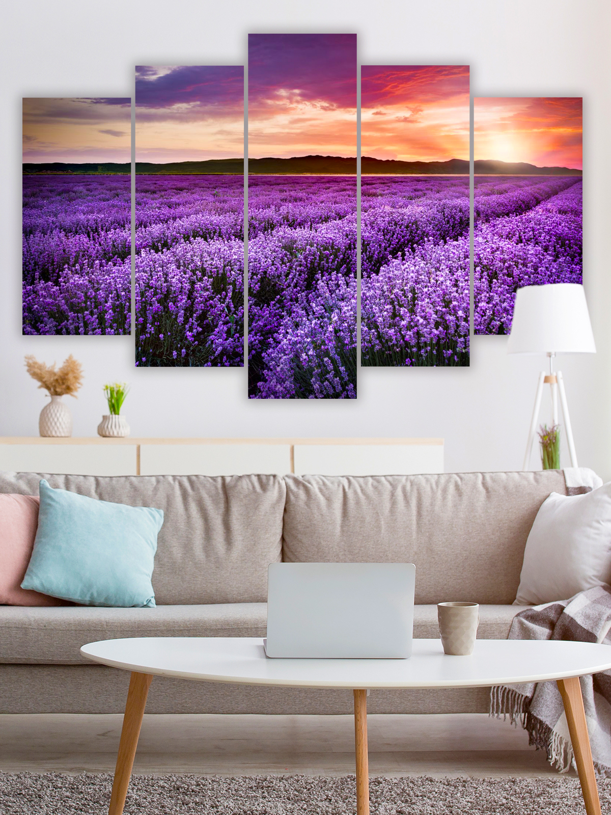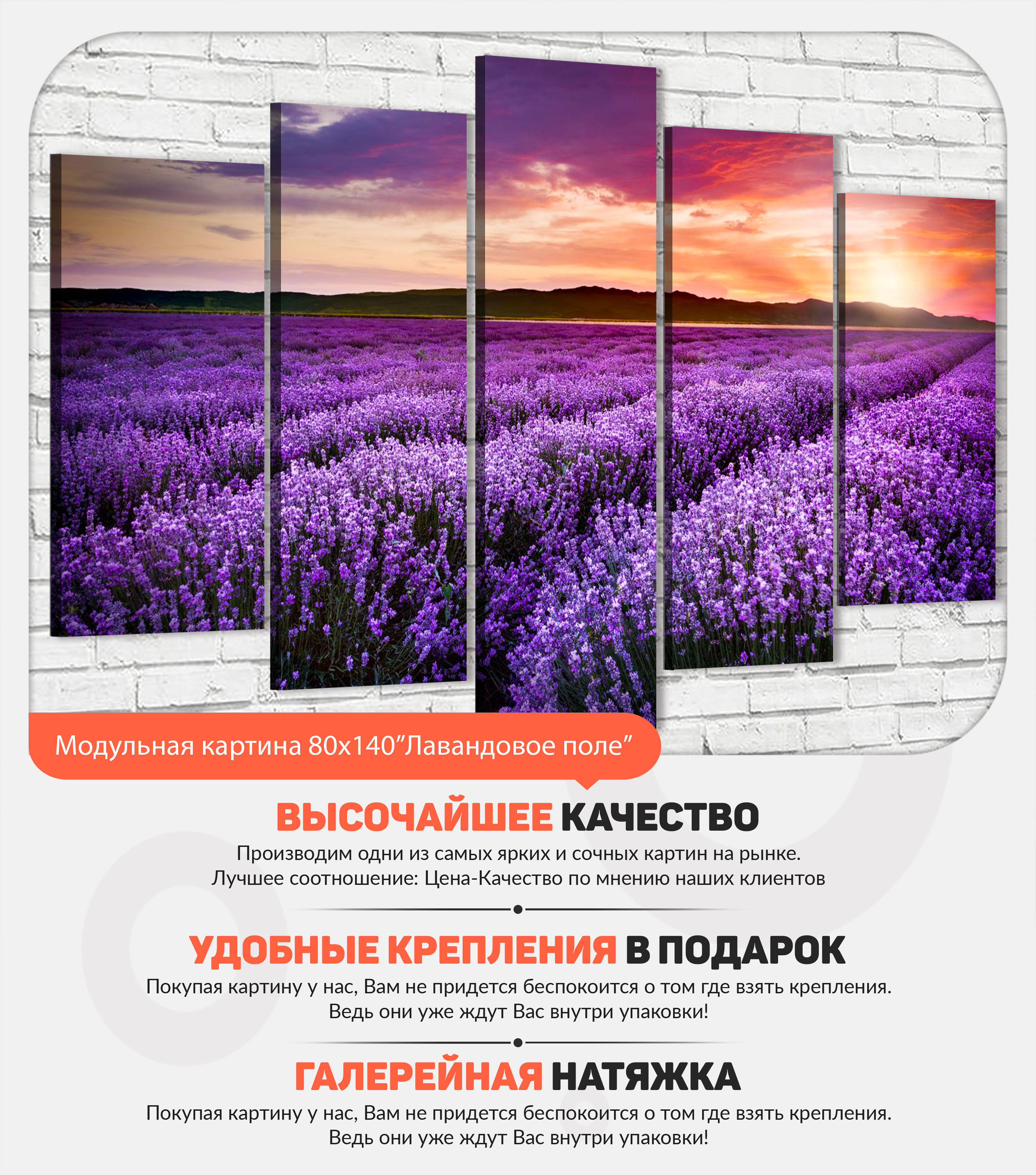 Большая картина на холсте для интерьера "Лавандовое поле" 60х100 см. Ф282 Крепления в подарок