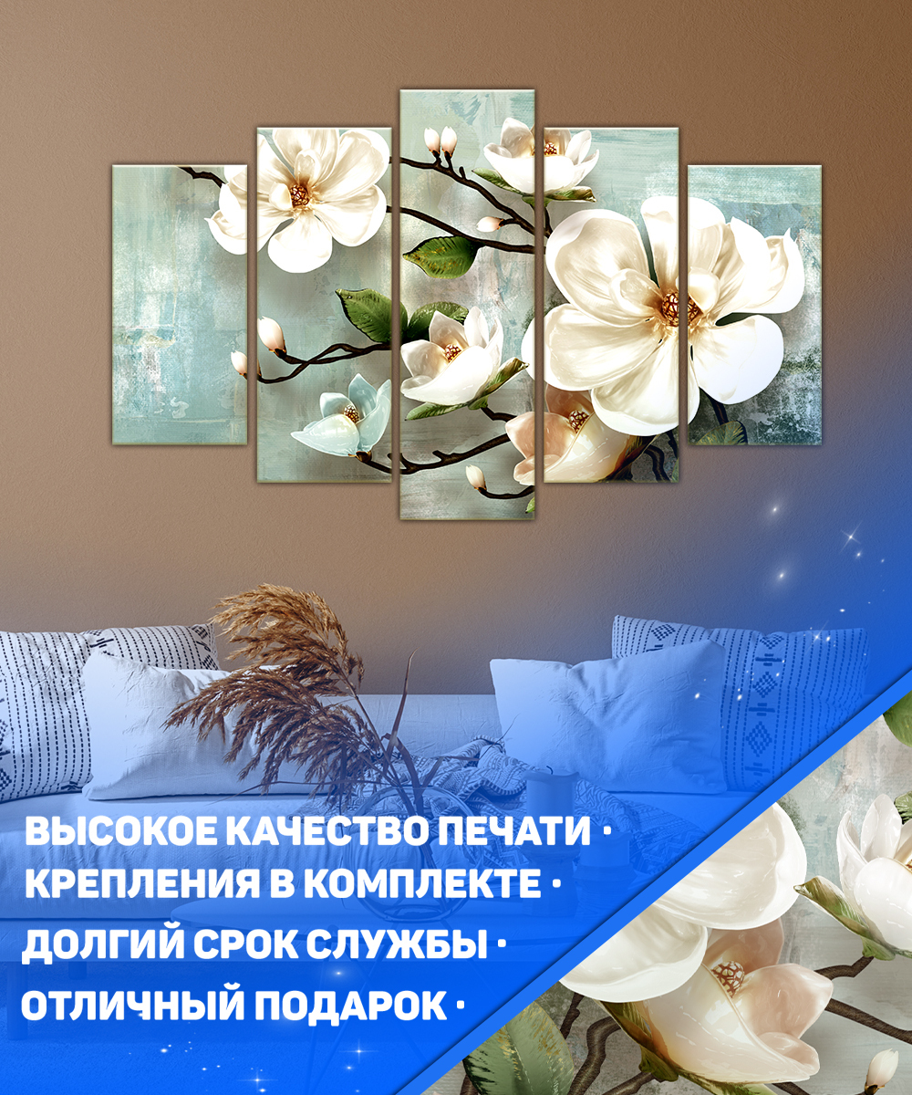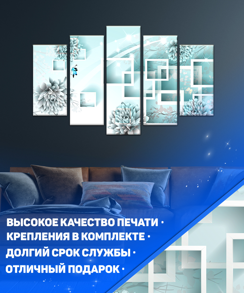 Модульная картина для интерьера 140x80см. / В спальню / Цветы / Абстракция / Добродаров md0105