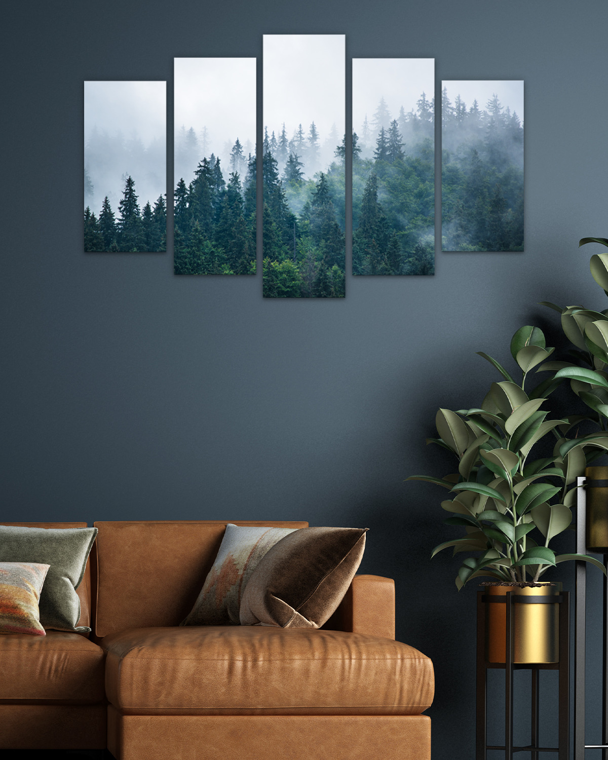 Модульная картина "Сосновый лес в тумане" Большая Репродукция 80х140 md0102