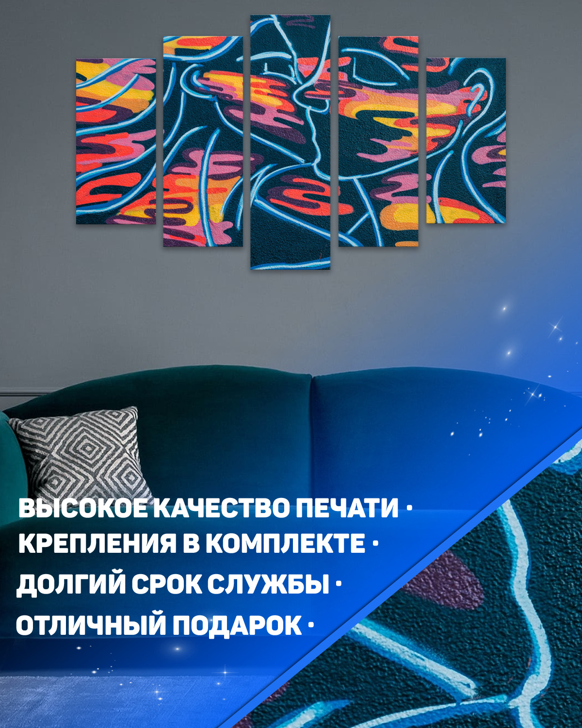 Модульная картина "Поцелуй влюбленных" Большая Репродукция 80х140 md0078
