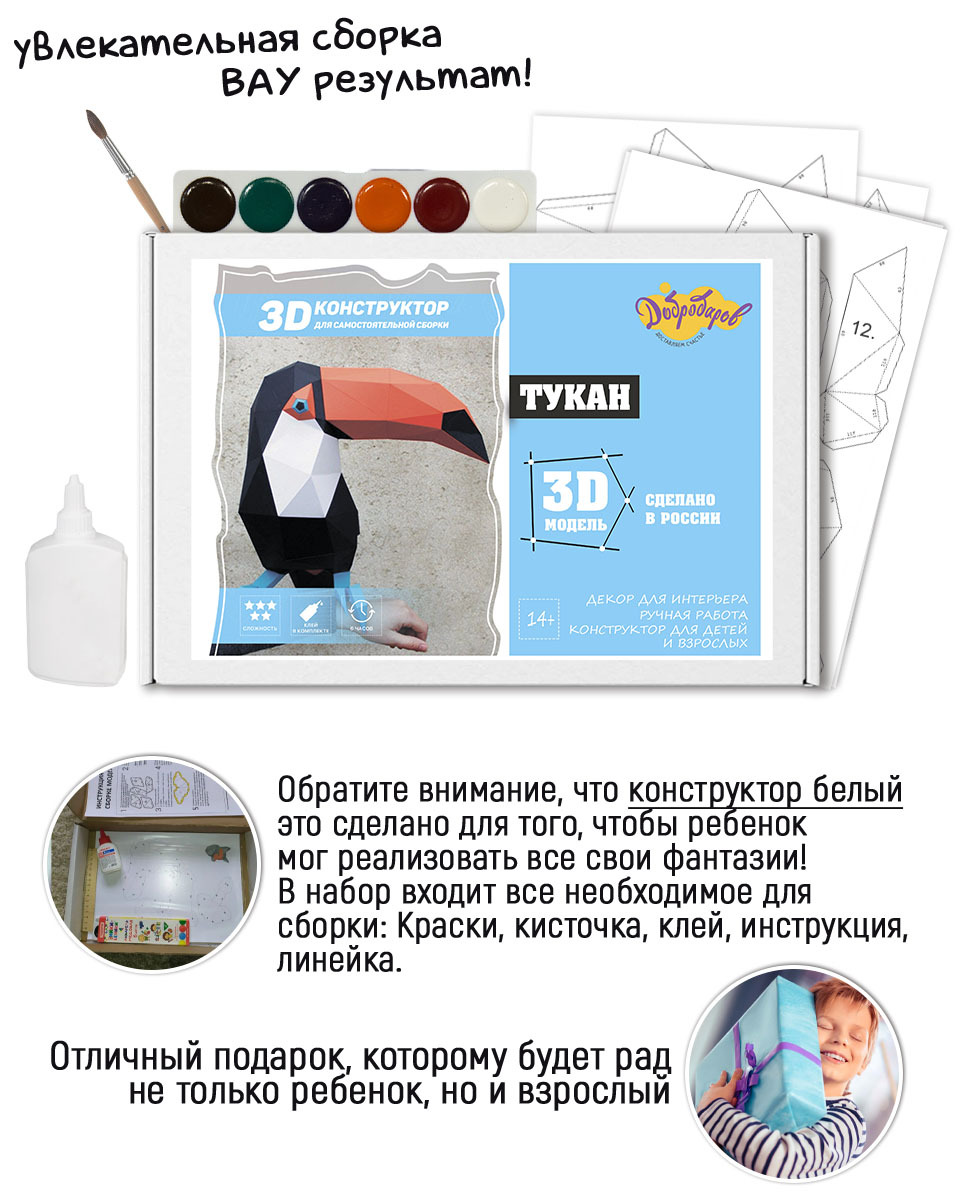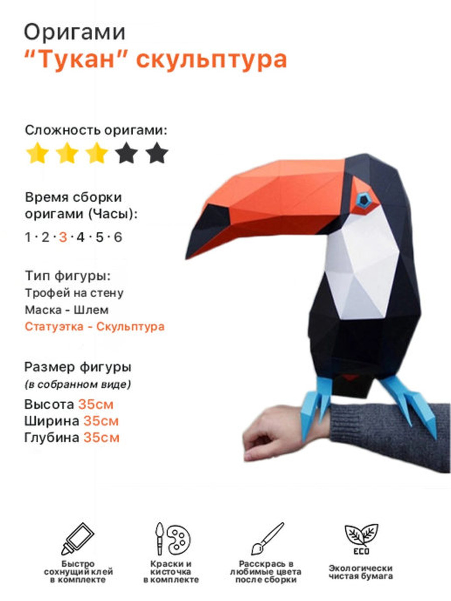 Оригами "Тукан" Комплект - Лайт, 3D Конструктор для самостоятельной сборки OR8