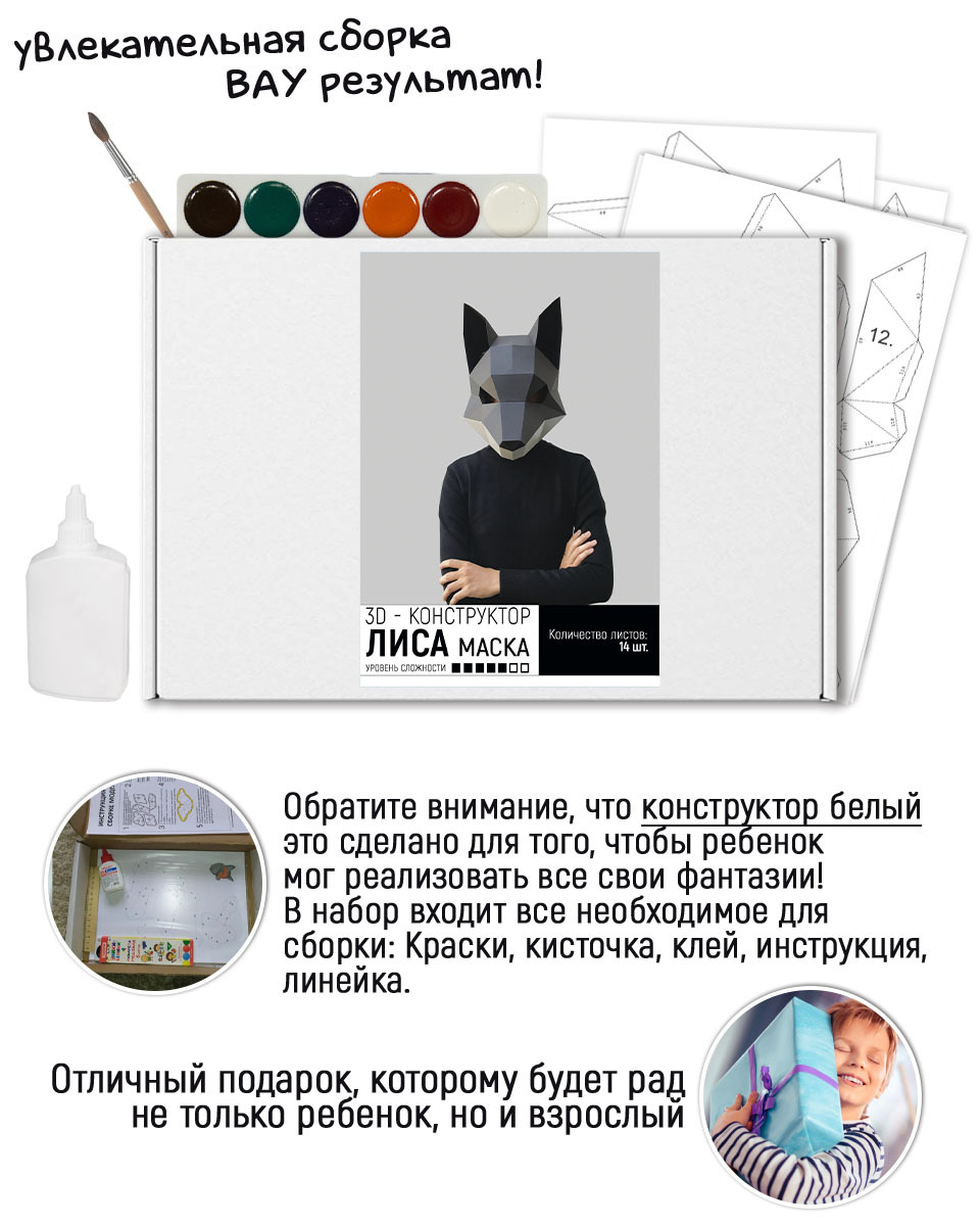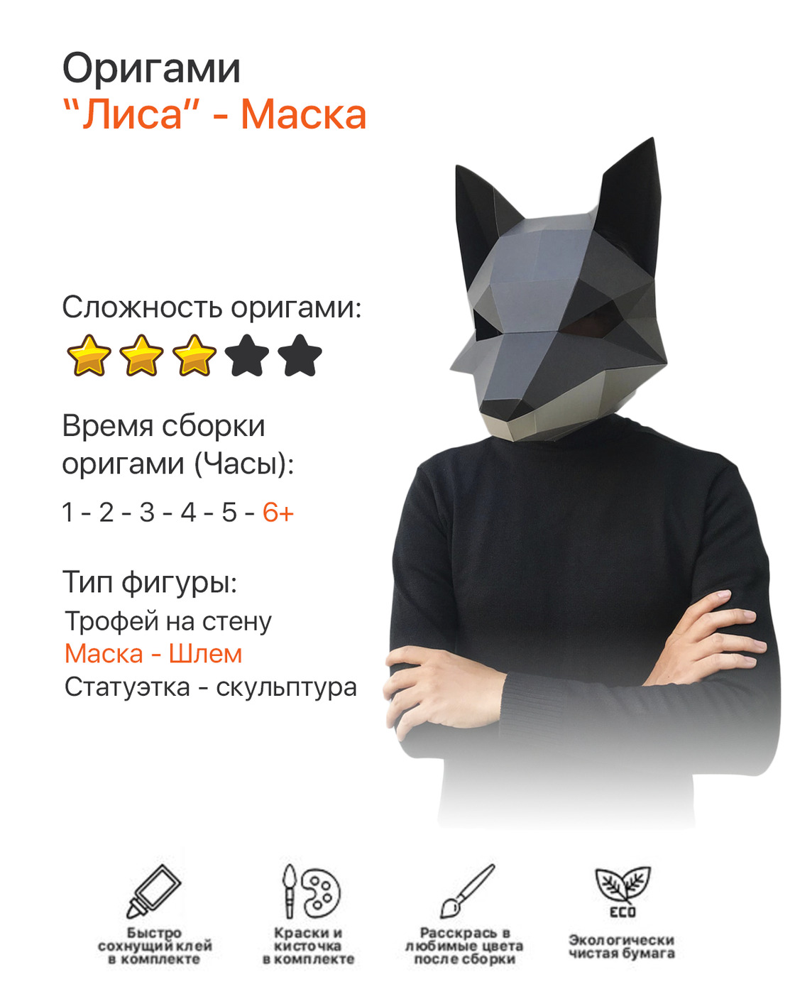 Оригами "Маска Лисы" Комплект - Лайт, 3D Конструктор для самостоятельной сборки OR28