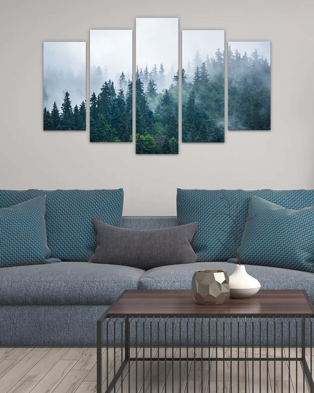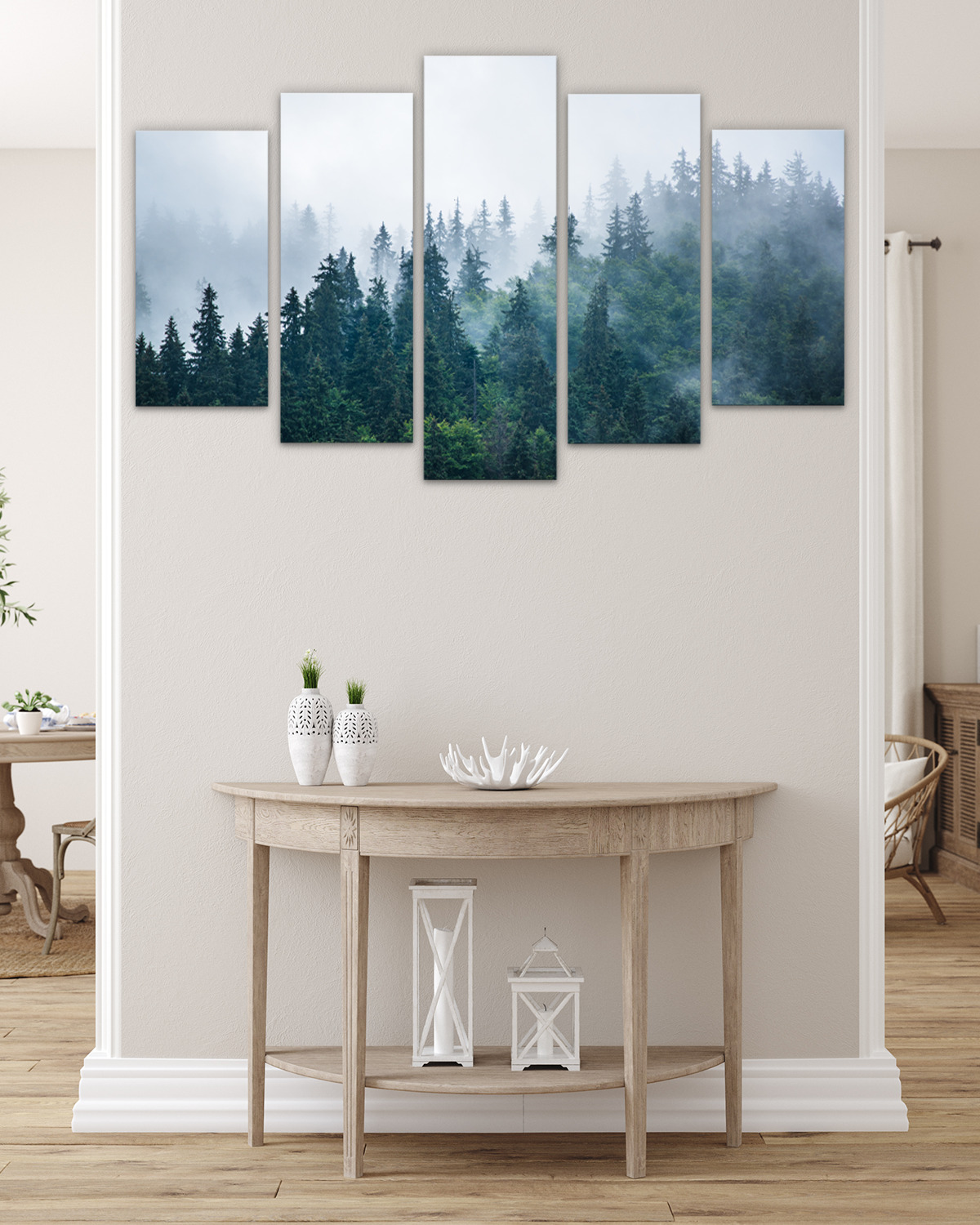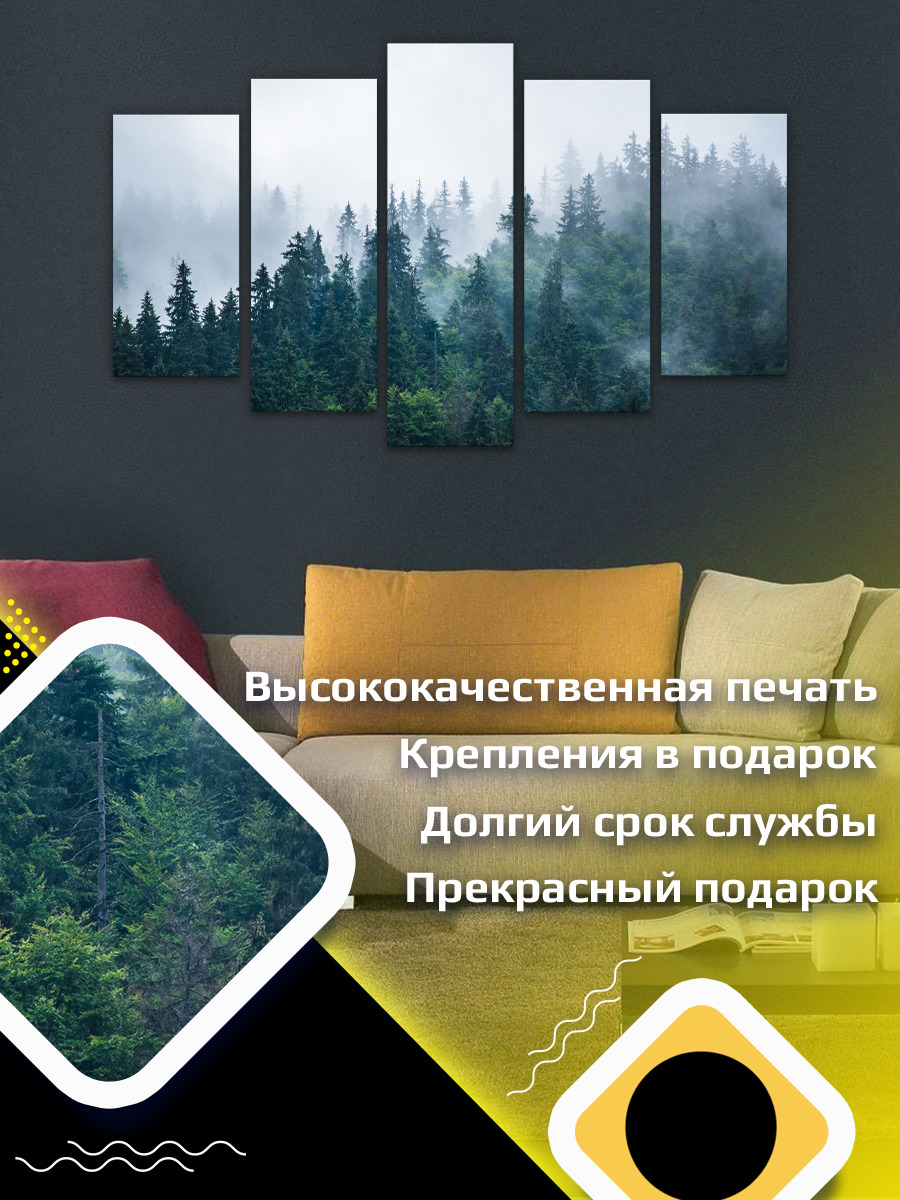 Картина модульная "Сосновый лес и густой туман" Большая Репродукция 80х140 dm0102