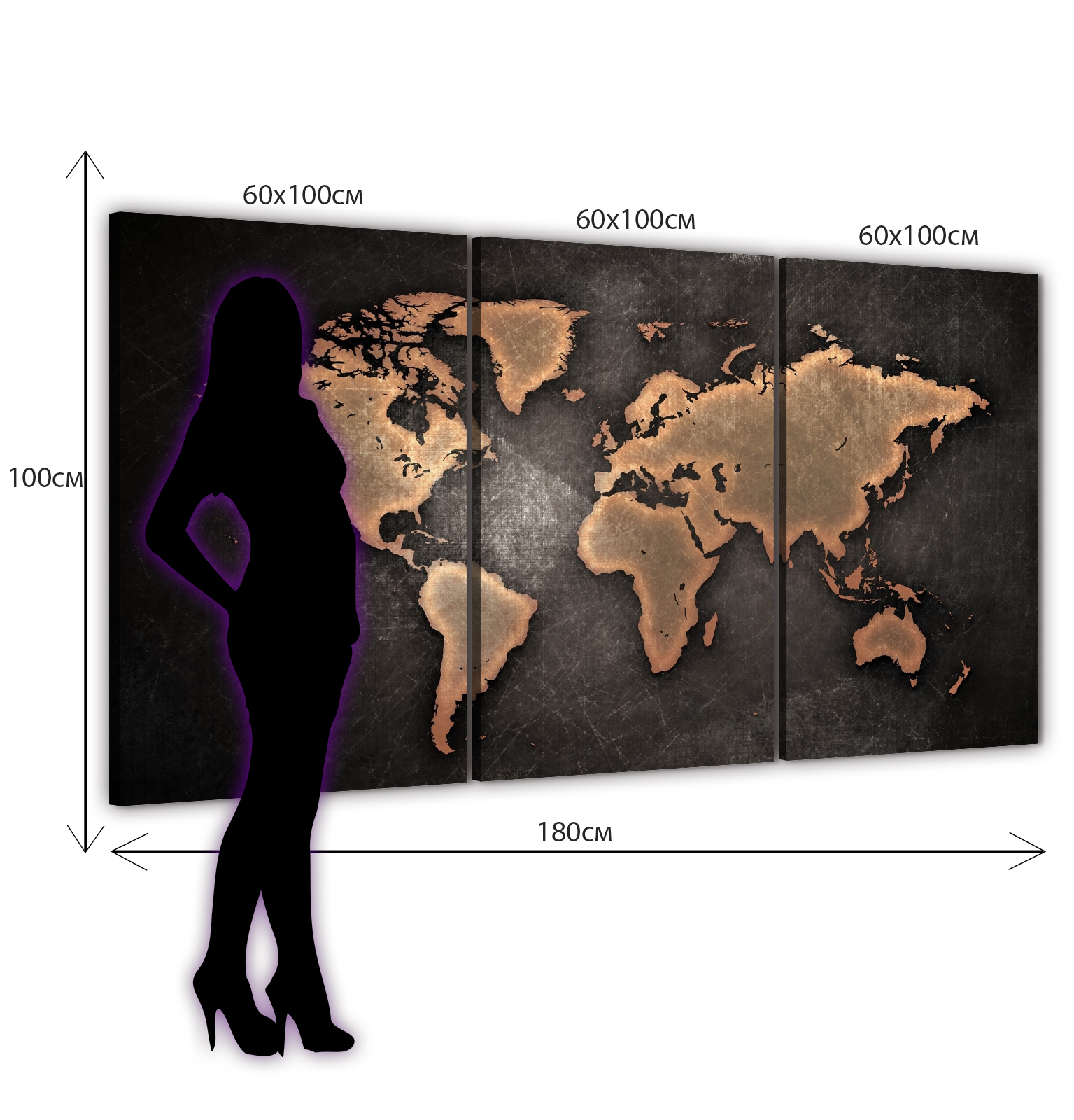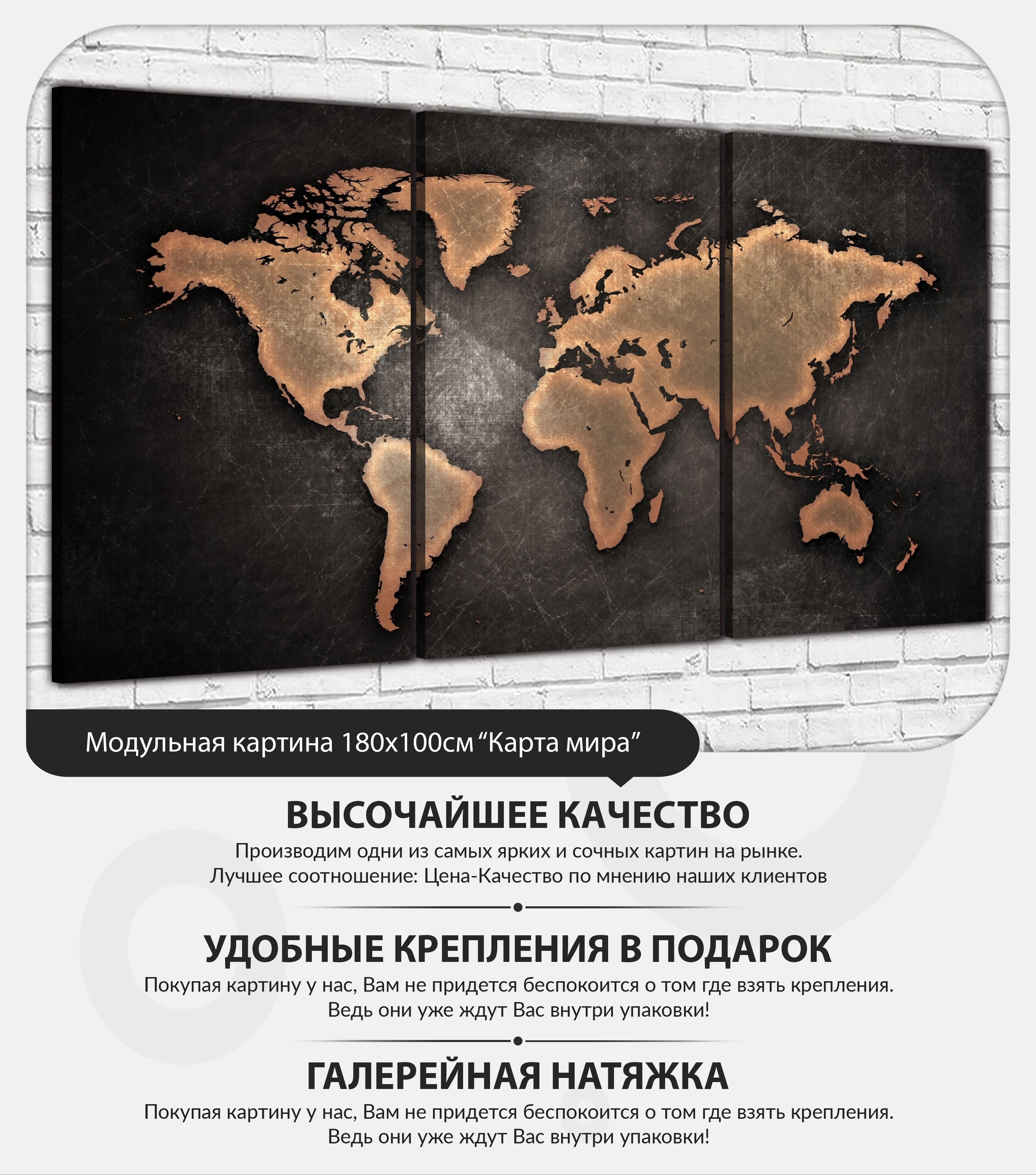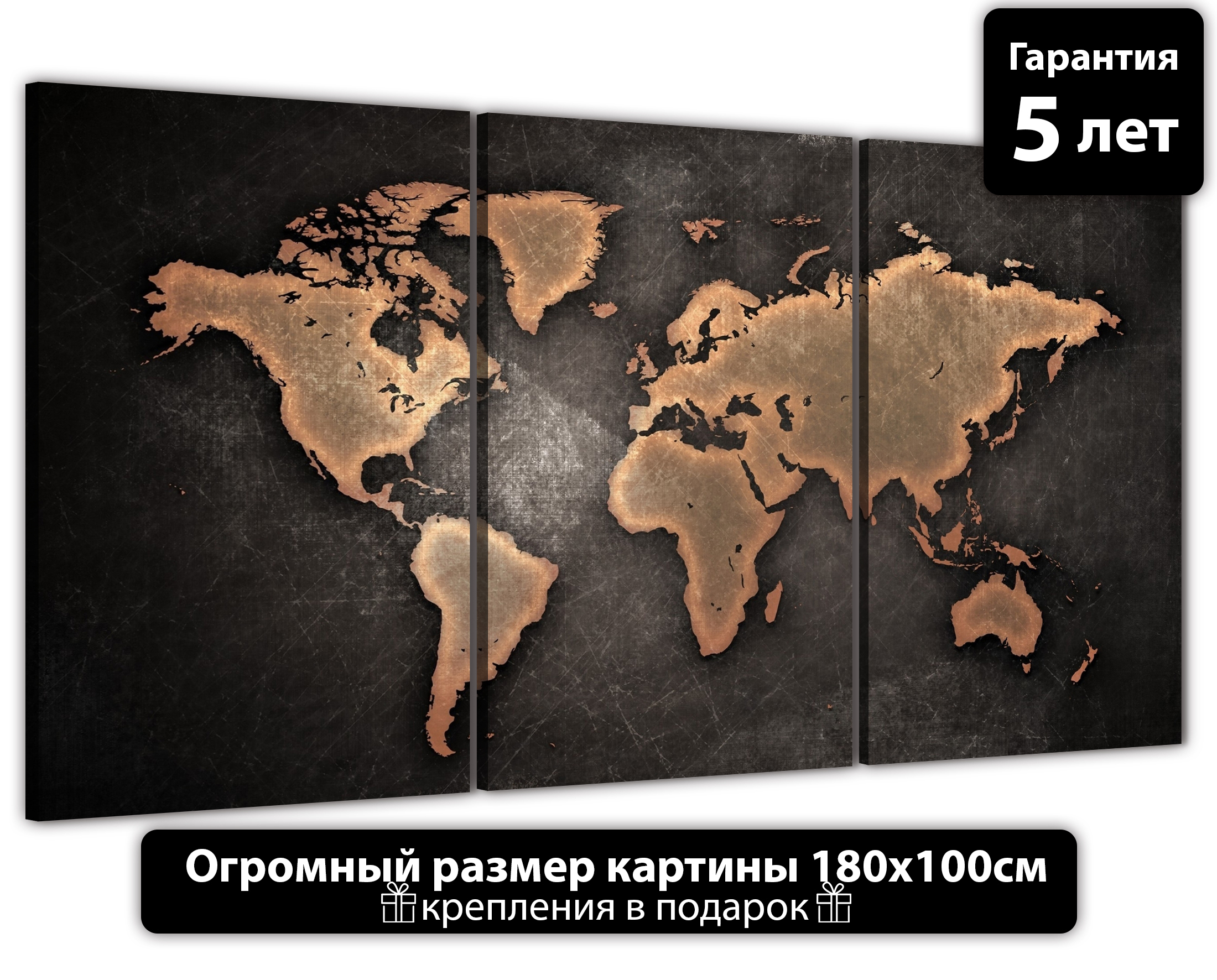 Большая модульная картина для интерьера на стену / Картина на холсте "Карта мира" 180х100см ТРБ-0002
