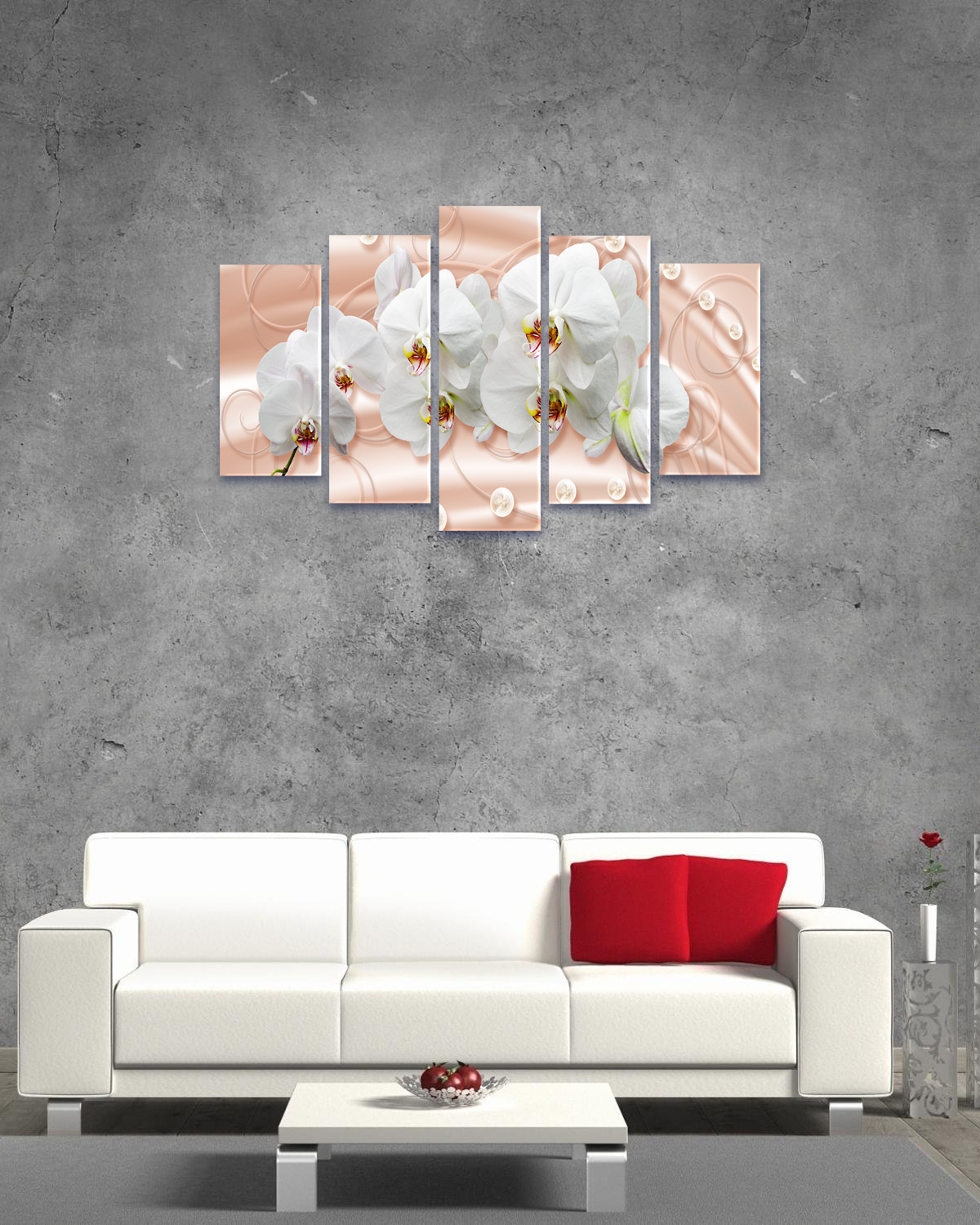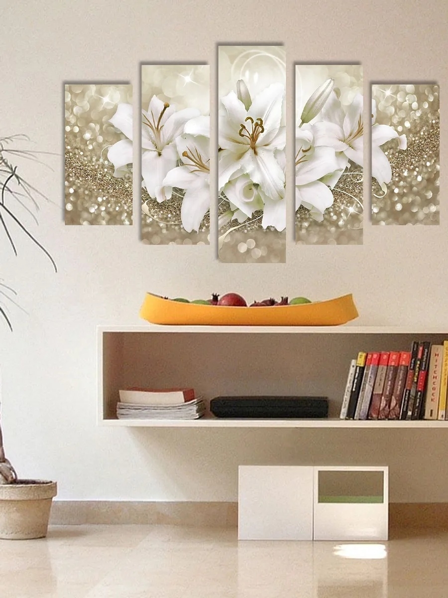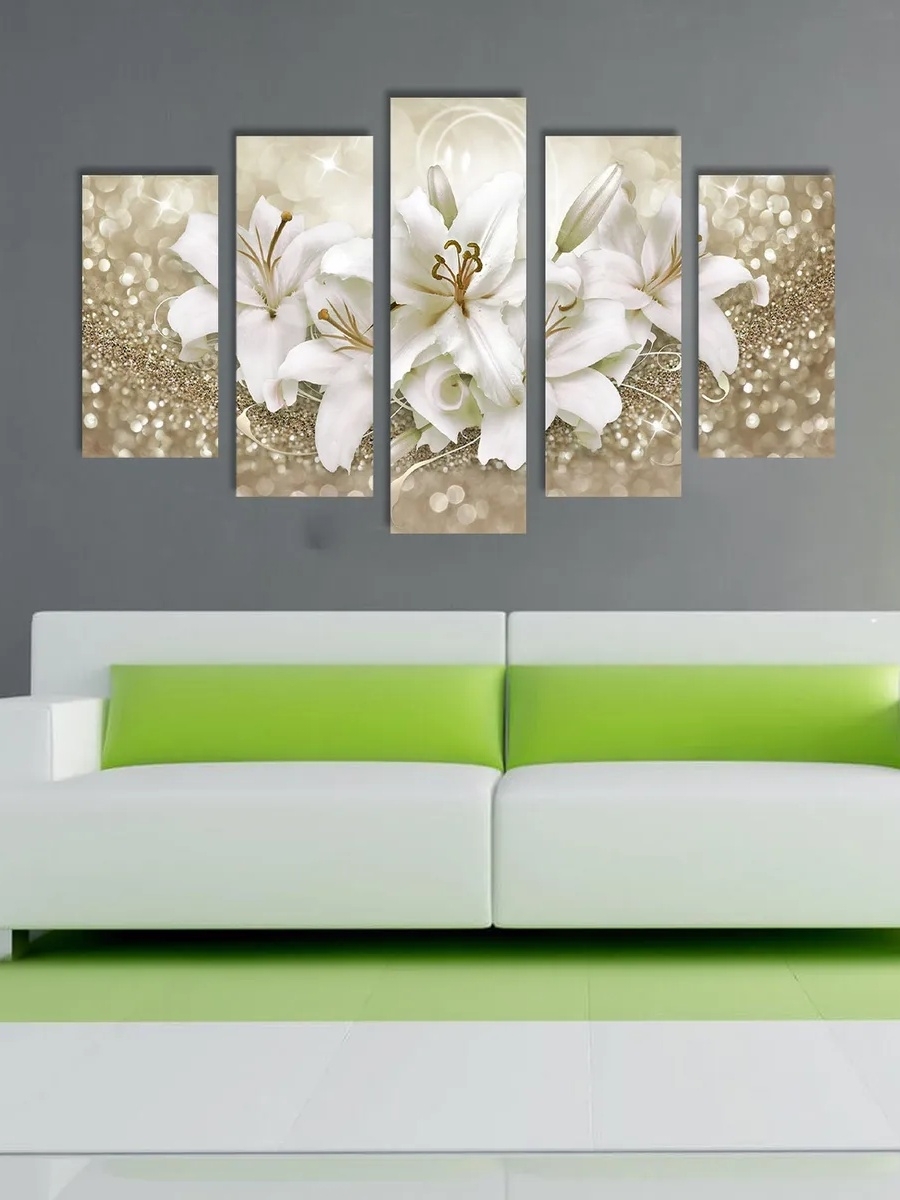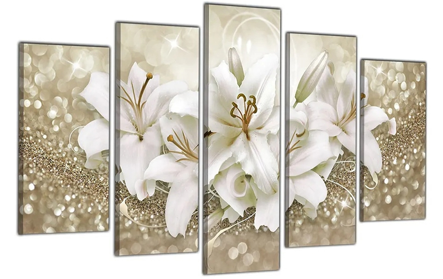 Модульная картина для интерьера на стену / Картина на холсте "Цветы белые лилии" 80х140см М2489