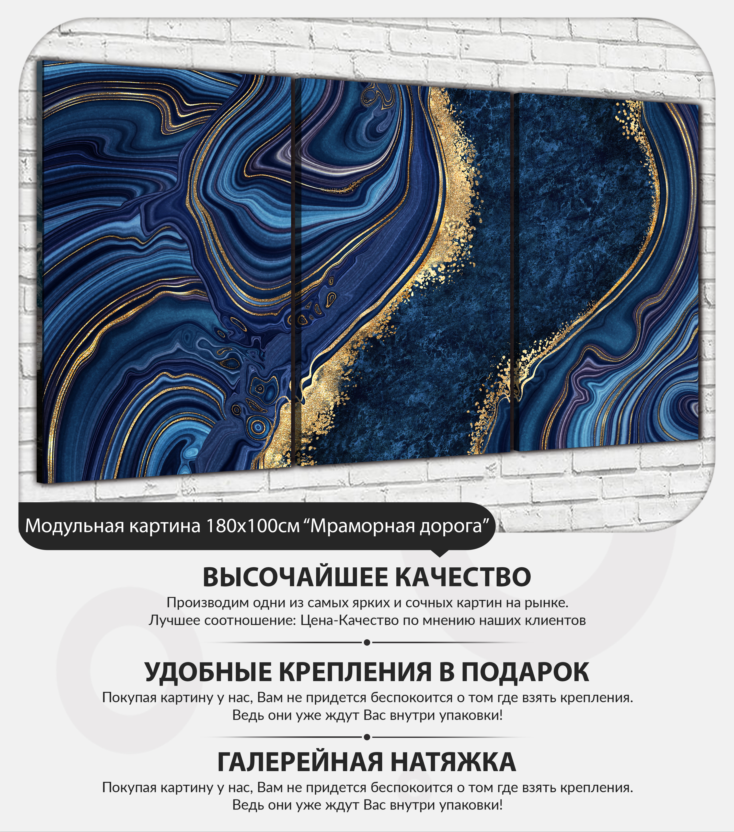 Большая модульная картина для интерьера на стену / Картина на холсте Абстракция 180х100см ТРБ-0005