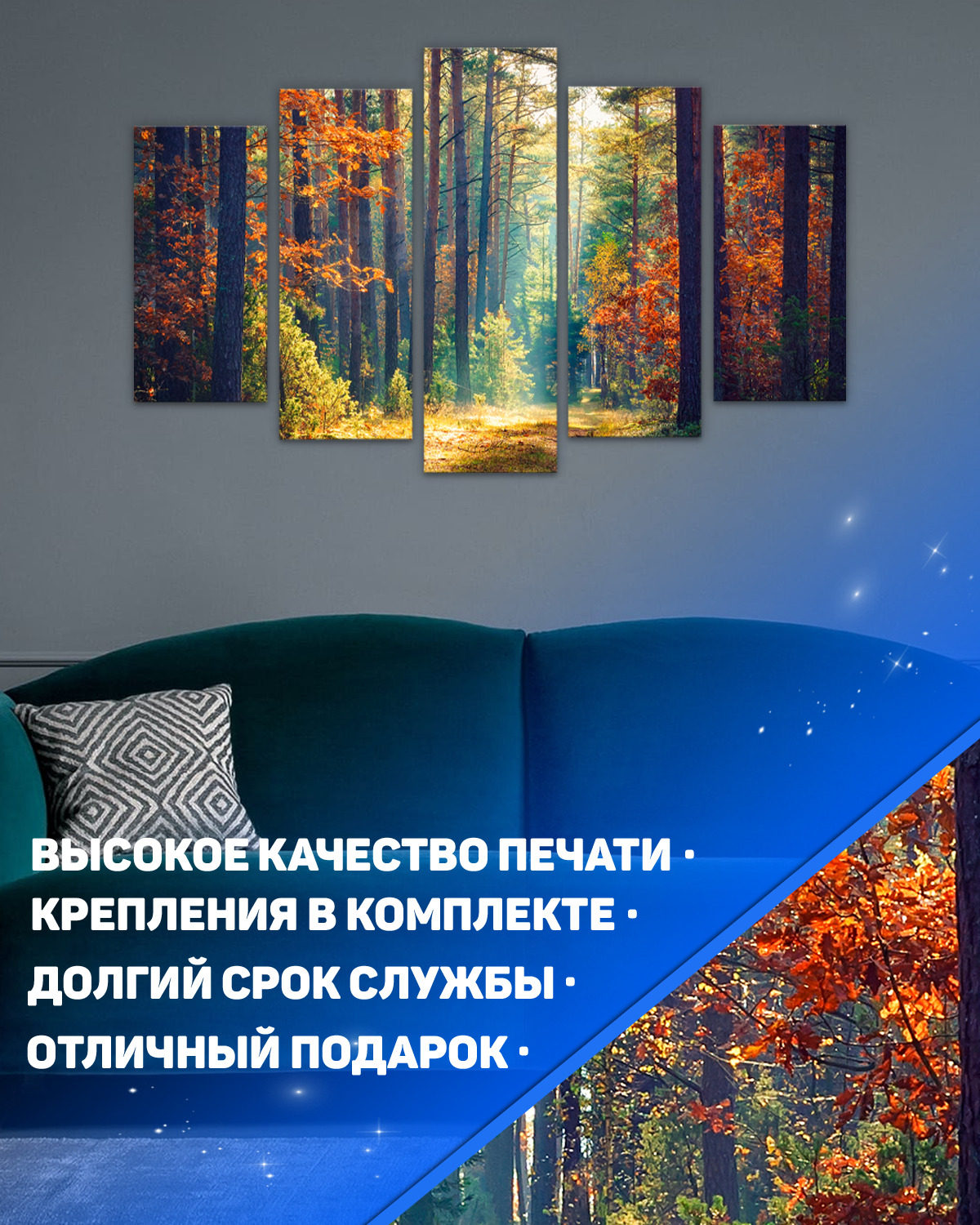 Модульная картина "Осенний лес" Большая Репродукция 80х140 md0097