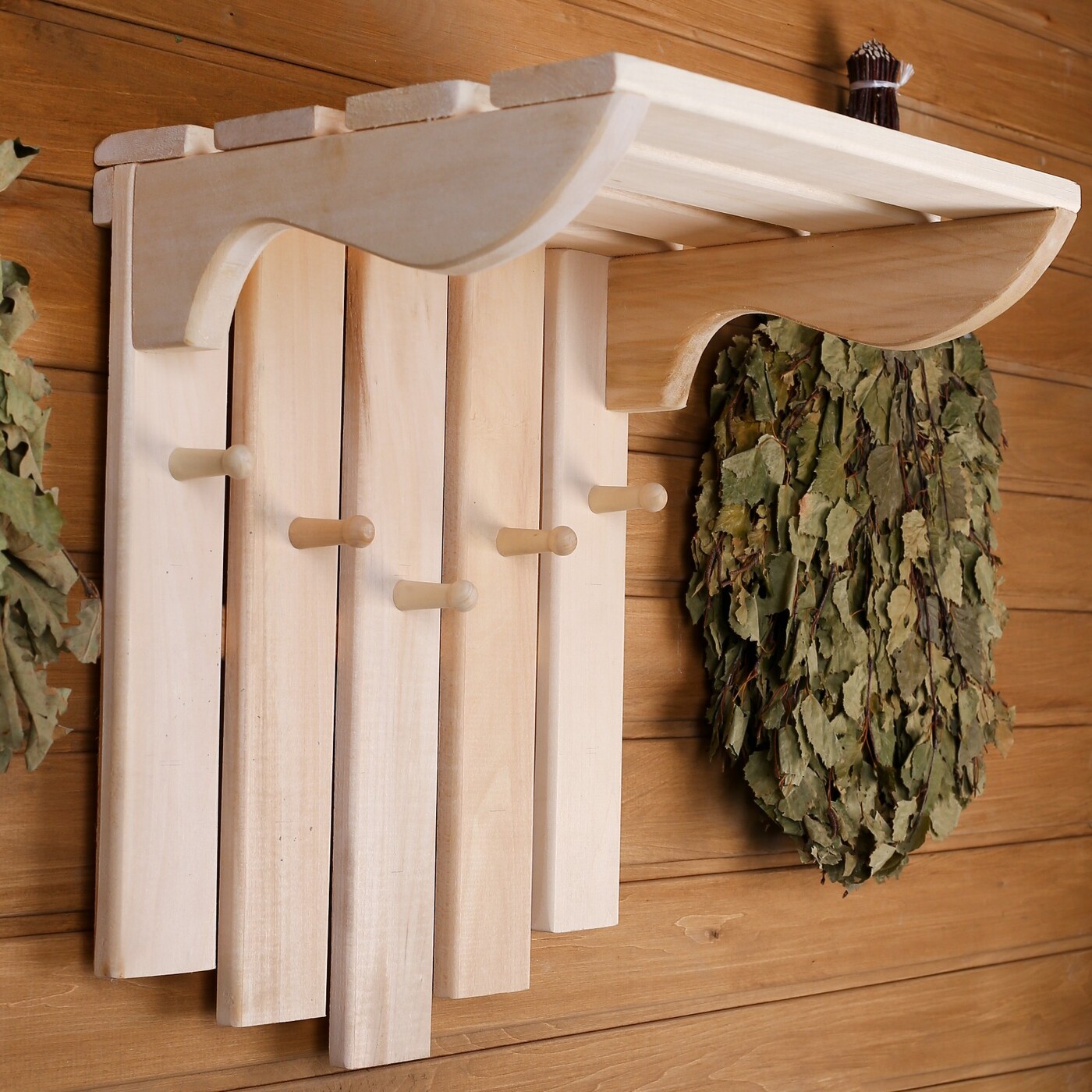 Полка-вешалка большая 5 крючков 34х39х45см, липа Добропаровъ Добропаровъ