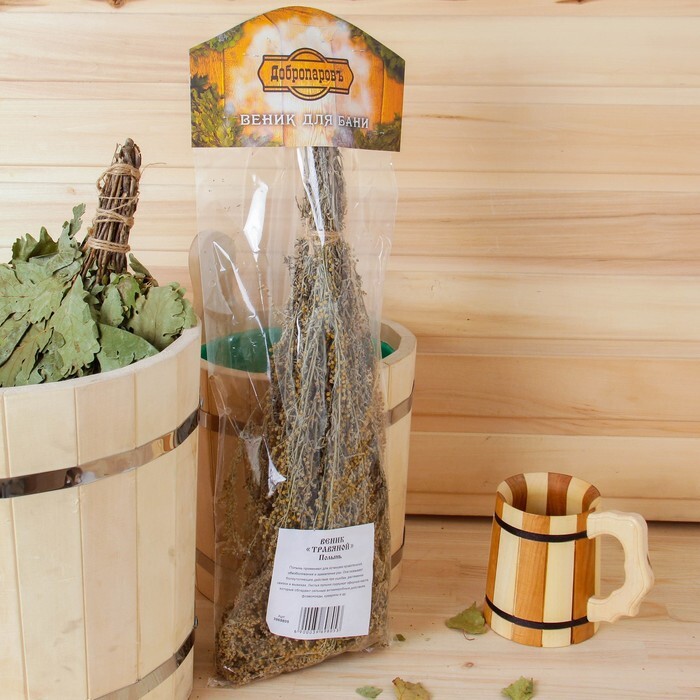 Веник для бани 45 см ТРАВЯНОЙ из полыни, в индивидуальной упаковке