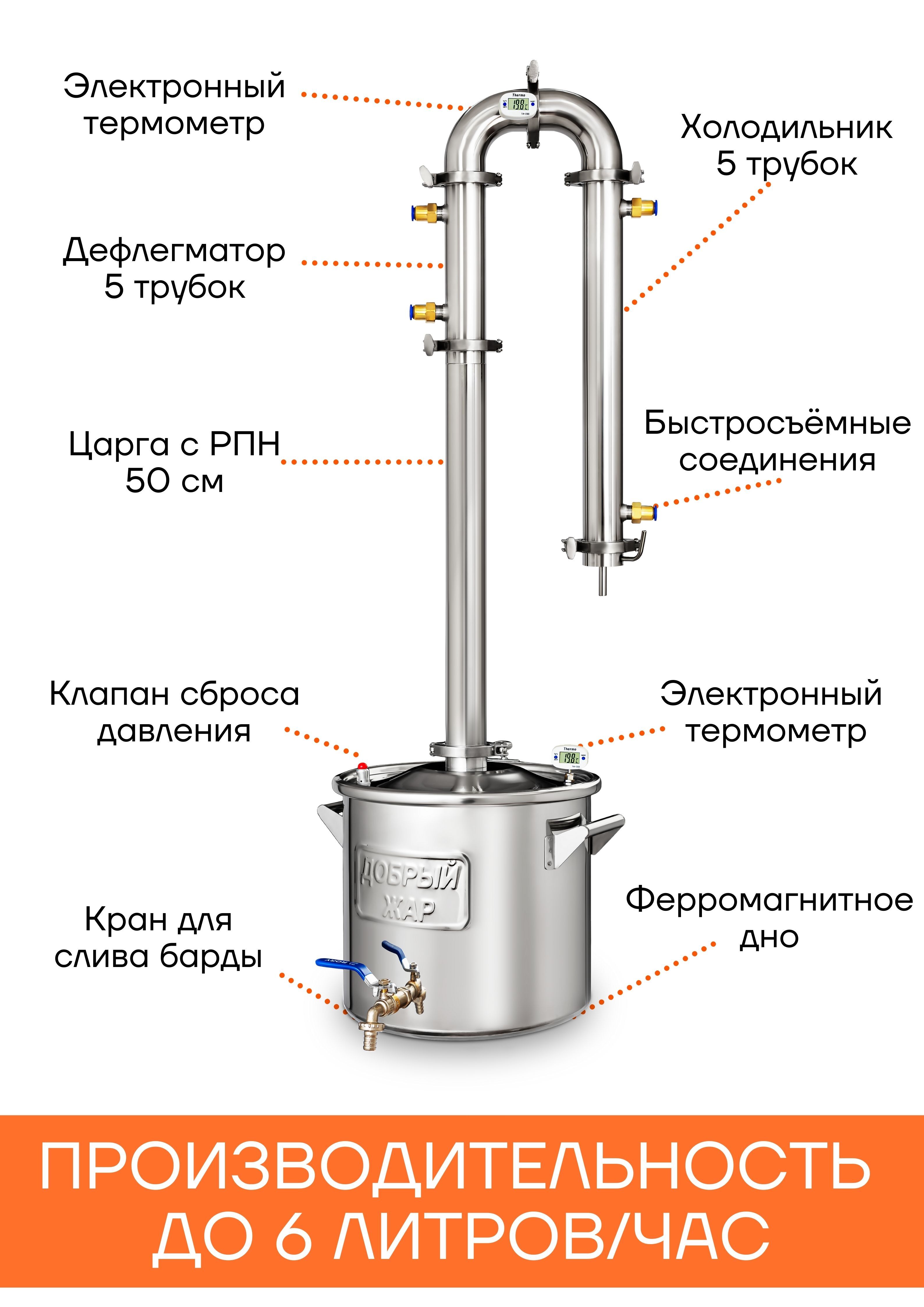 Самогонный аппарат колонного типа с дефлегматором 5 трубок, Добрый Жар "Абсолют" 30 литров