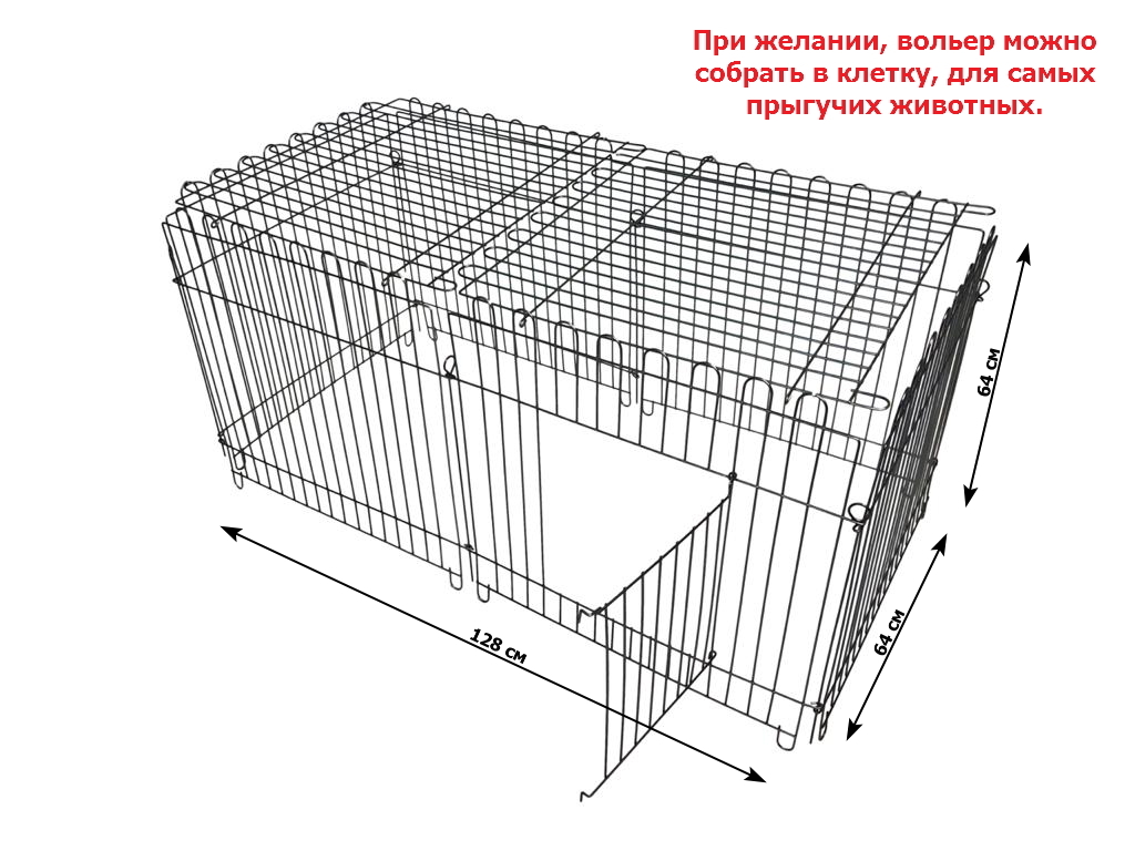 Вольер для собак, щенков с дверью - 6 секций по 74*63 см