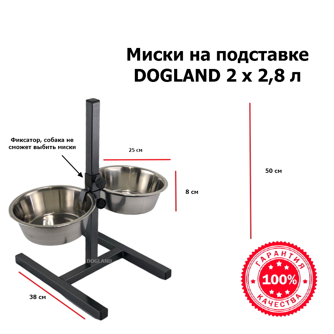 Миски для собак, на подставке, Dogland, 2х2,8л