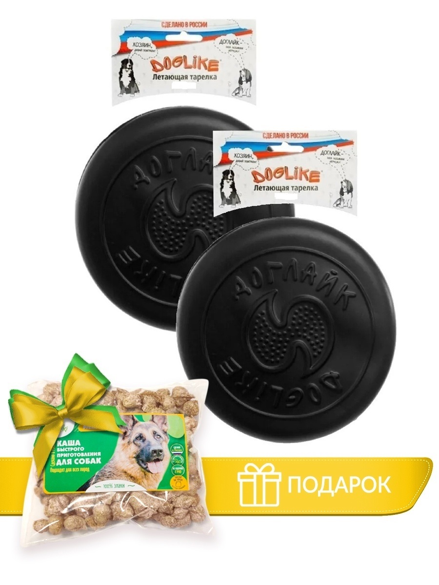 Набор Тарелка летающая (диск, фрисби) большая Doglike (Черный) 2 штуки + КАША В ПОДАРОК!
