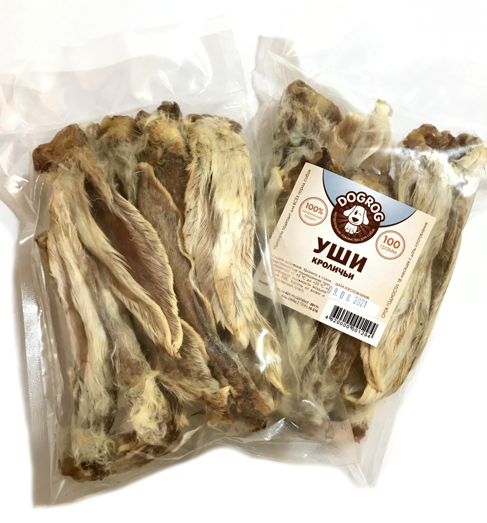 Уши кроличьи сушеные, 100 гр, натуральное лакомство-игрушка для собак и кошек, DOGROG